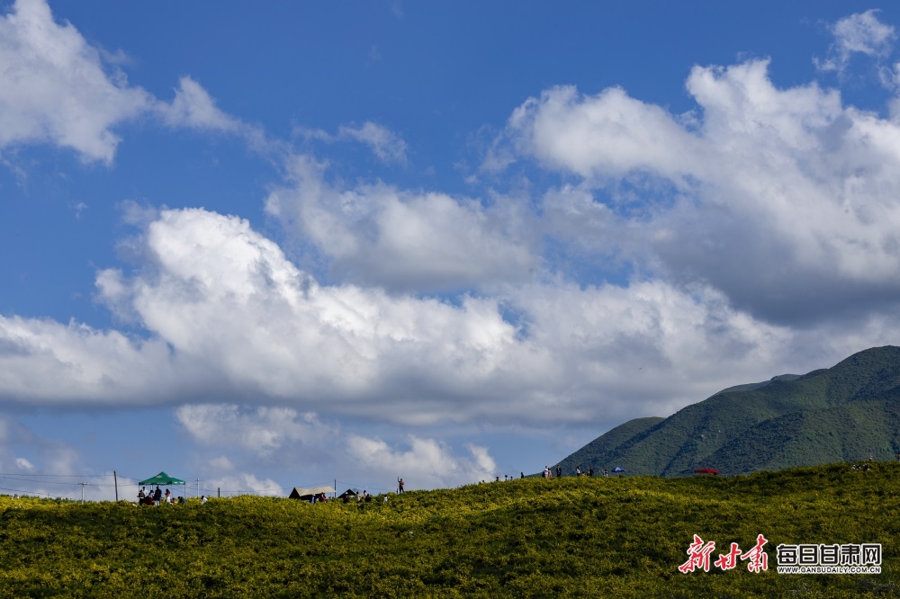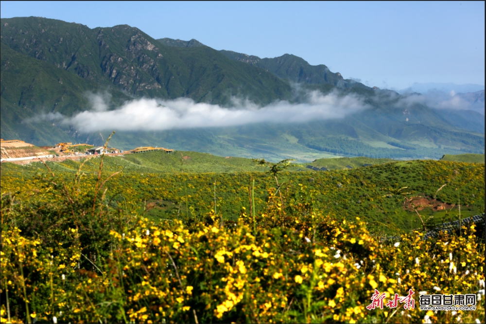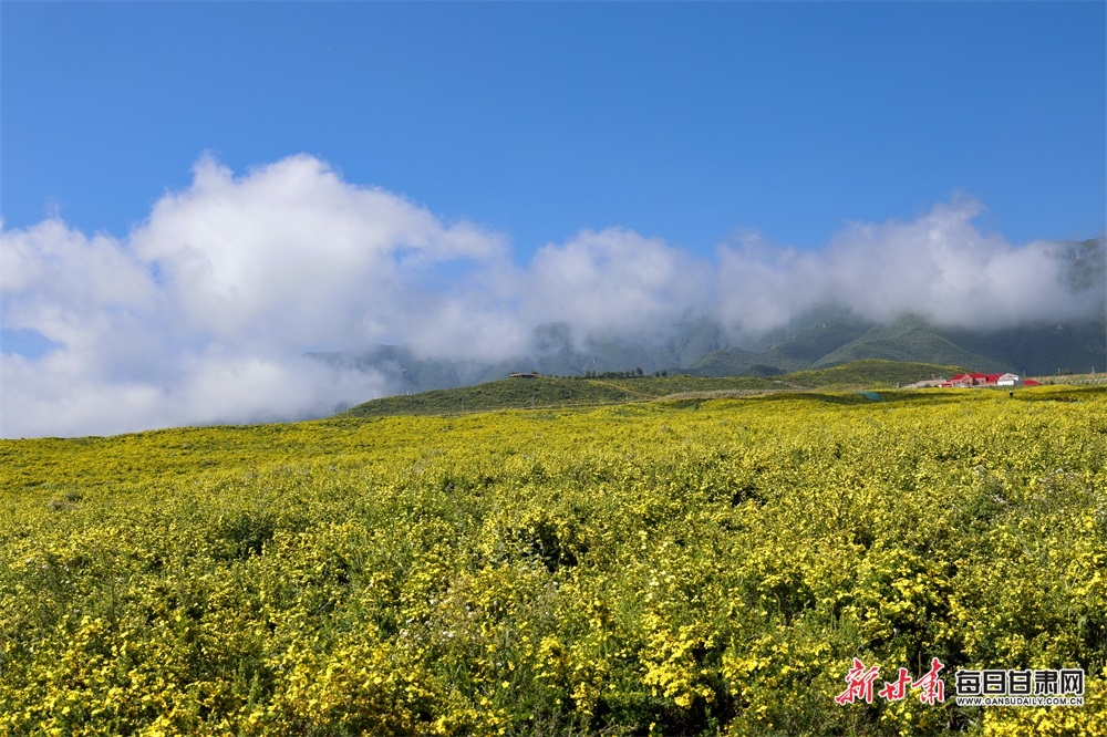 盛夏,积石山下黄草坪的金露梅盛开,黄草坪身披金色纱衣,款款而来!
