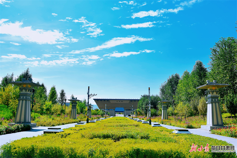 秋日的武威河西都会景区,处处洋溢着诗意。大汉赋馆黛瓦鎏金,在秋阳的映照下,尽显古朴典雅的韵味;飞燕湖湖水澄澈似镜,将蓝天、白云与岸边摇曳的芦苇完整倒映,微风拂过,湖面泛起细碎波光。