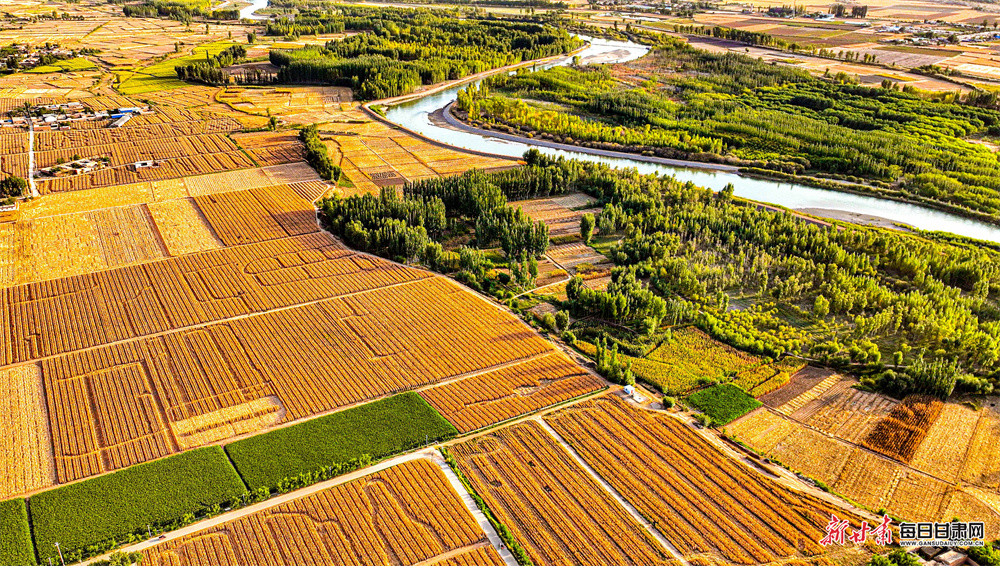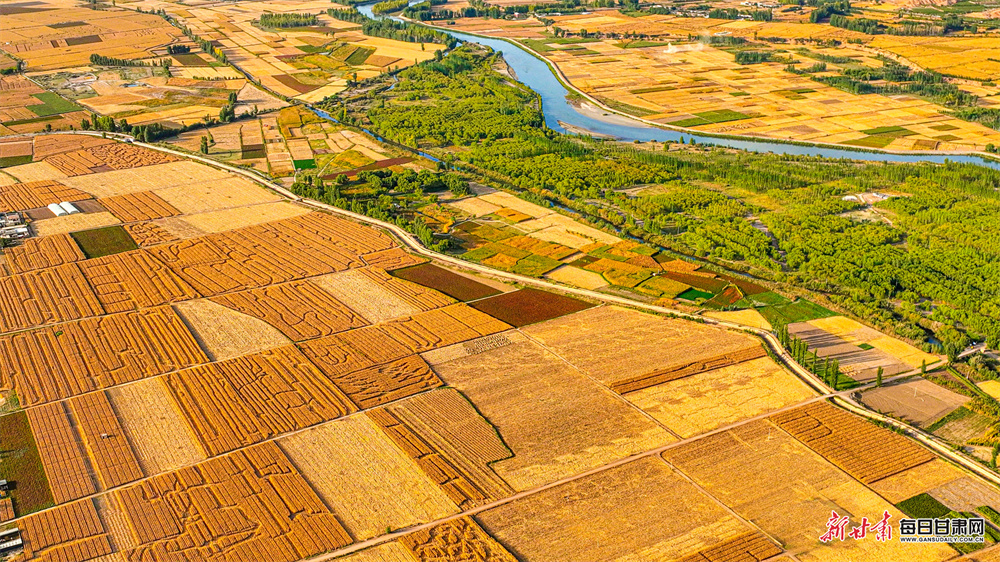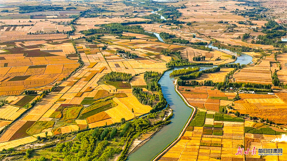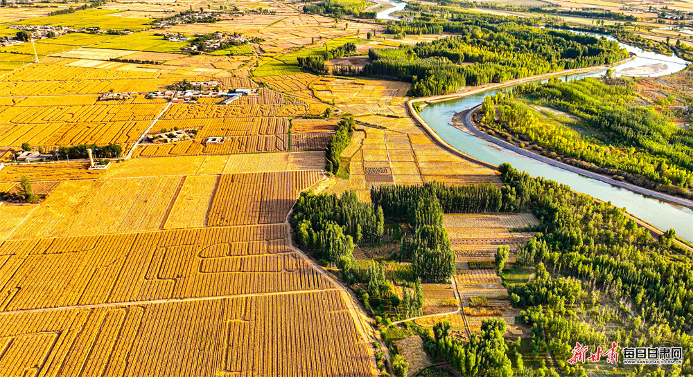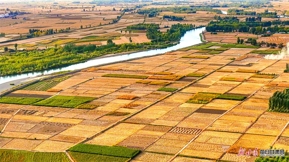 9月26日傍晚,夕阳洒向张掖市临泽县鸭暖镇的黑河岸边。蜿蜒的黑河水如碧带般缓缓流淌,两岸田野里,待收的玉米饱满沉实、水稻泛着金黄、辣椒缀满枝头,搭配着色彩斑斓的树木、芦苇与湿地,每一处景致都透着丰收的勃勃生机,构成一幅绚丽动人的金秋画卷。
