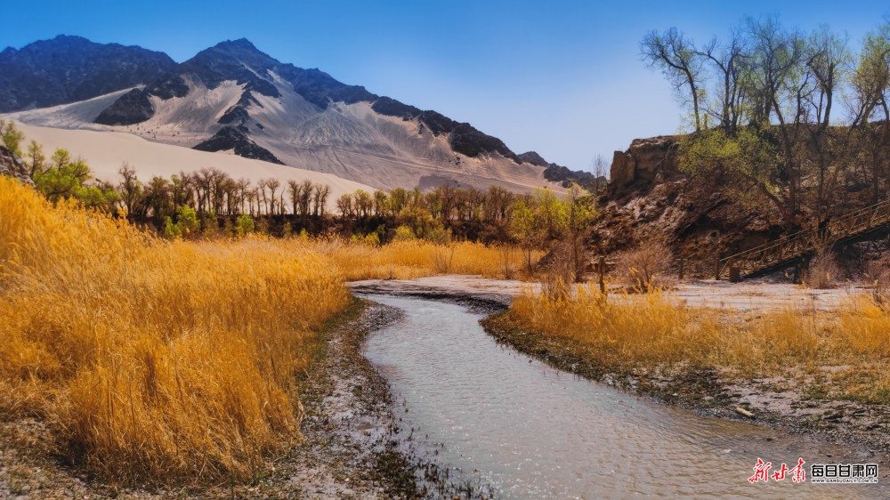 金秋时节,阿克塞县多坝沟胡杨峡迎来最佳观赏期。峡谷内,黄绿相间的野生胡杨沿沟壑错落铺展,与苍茫沙山、潺潺溪流、摇曳芦苇相映成趣,勾勒出一幅兼具雄浑与灵秀的绝美画卷,引得大批游客与摄影爱好者慕名前来,定格秋日盛景。