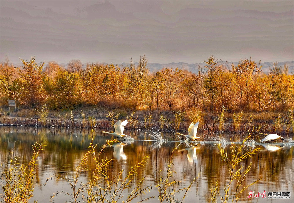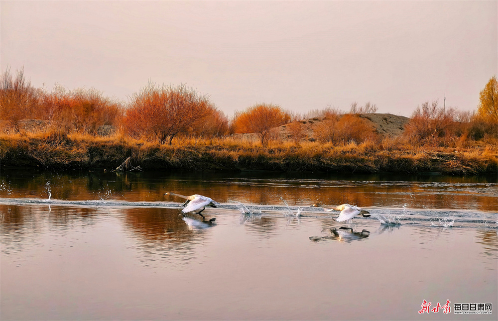 如今的张掖市高台县黑河湿地,碧水悠悠、飞鸟翔集,既是大天鹅等候鸟的越冬驿站,更是人与自然和谐共生的生动写照。