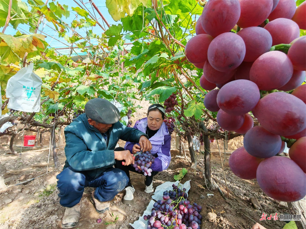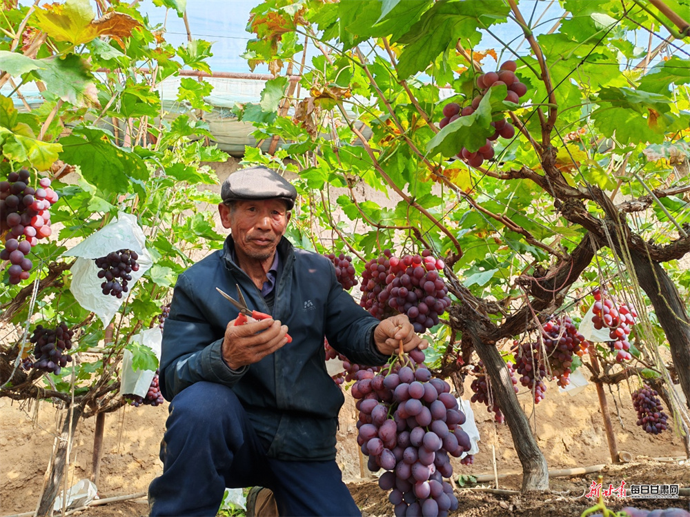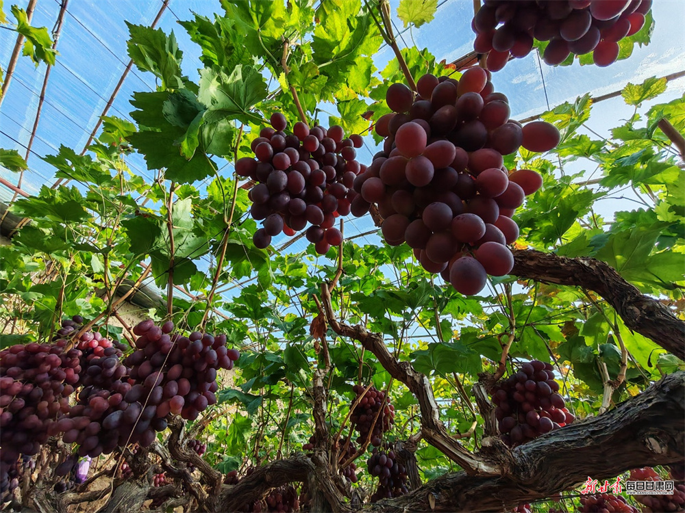 近年来,大马营镇花寨村对全村108座红提葡萄大棚进行了全面改造提升,让小小葡萄串起了村民的共同致富路。