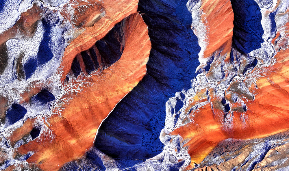 当初冬第一场雪轻盈洒落,张掖七彩丹霞迎来年度最诗意的邂逅。这片“大地调色板”褪去往日炽烈,在白雪映衬下化作冰与火交织的秘境,铺展成一幅静谧瑰丽的水墨长卷。