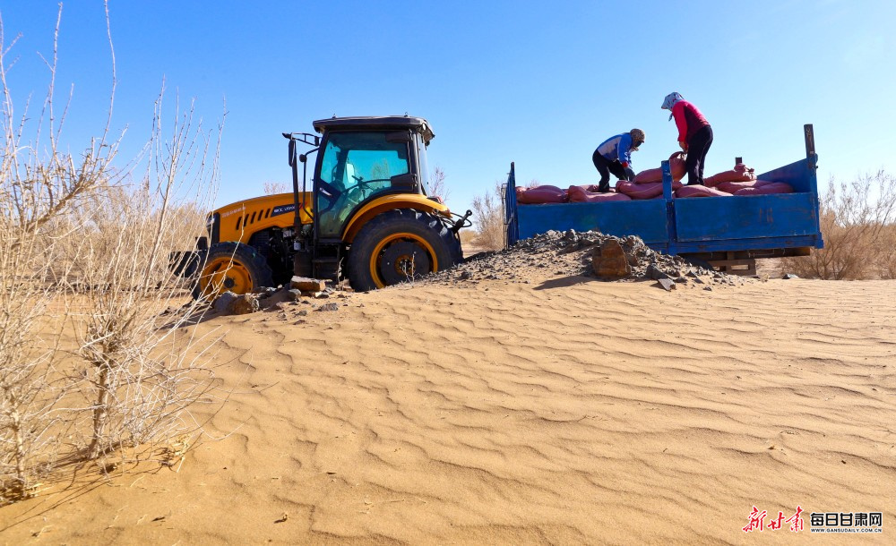 11月25日,张掖市临泽县治沙林场的省级乡土树种采种基地内,沙海之上一派繁忙景象。3000多亩梭梭林迎风而立,100多名林业工作人员手持木棒轻轻敲打梭梭母树枝条,沙沙声响中,被誉为“沙漠卫士”的梭梭种子纷纷坠落,为西北荒漠治理积攒“绿色希望”。