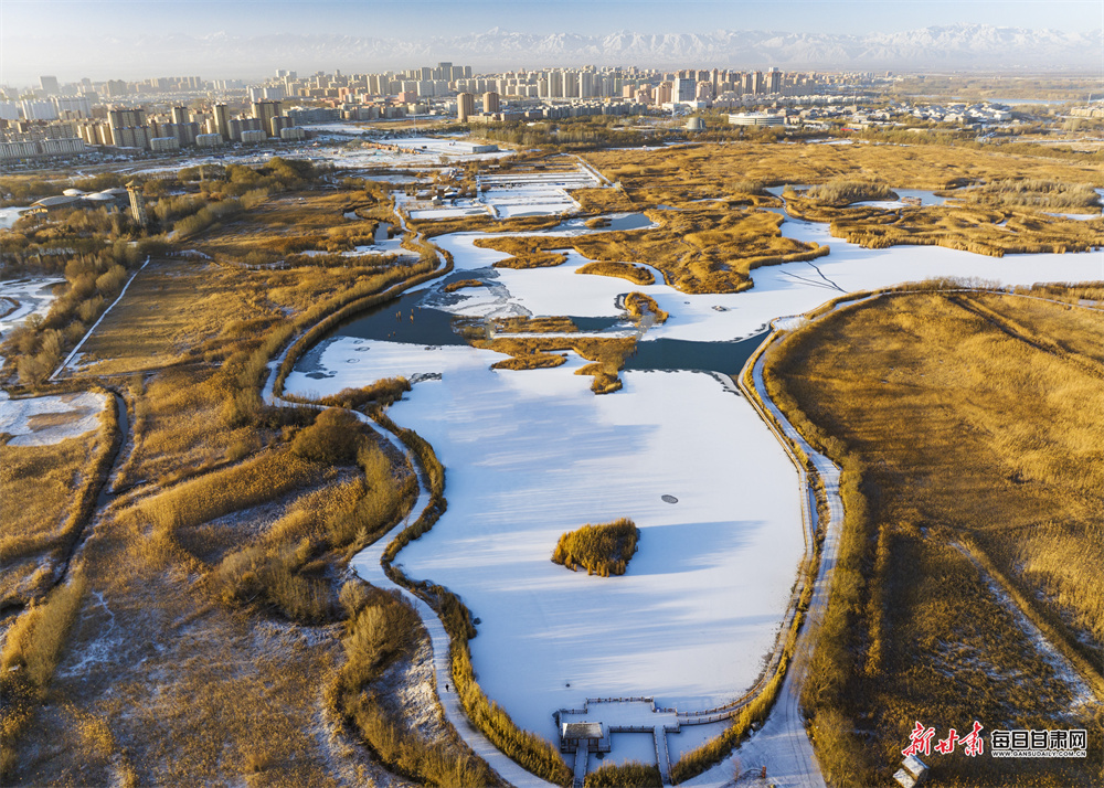 雪后初霁的湿地公园,不仅是市民游客休闲赏景的好去处,更彰显了张掖市生态文明建设的显著成效。