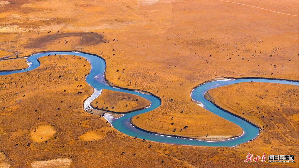 冬日的玛曲草原,是一首静默流淌的诗,一幅徐徐展开的画。凛冽寒风掠过草原,却吹不散深处的生机与暖意。条条溪流蜿蜒纵横,星罗棋布的沼泽在暖阳下泛着粼粼银光,宛如散落的碎钻镶嵌在雪原之上,景致美轮美奂。