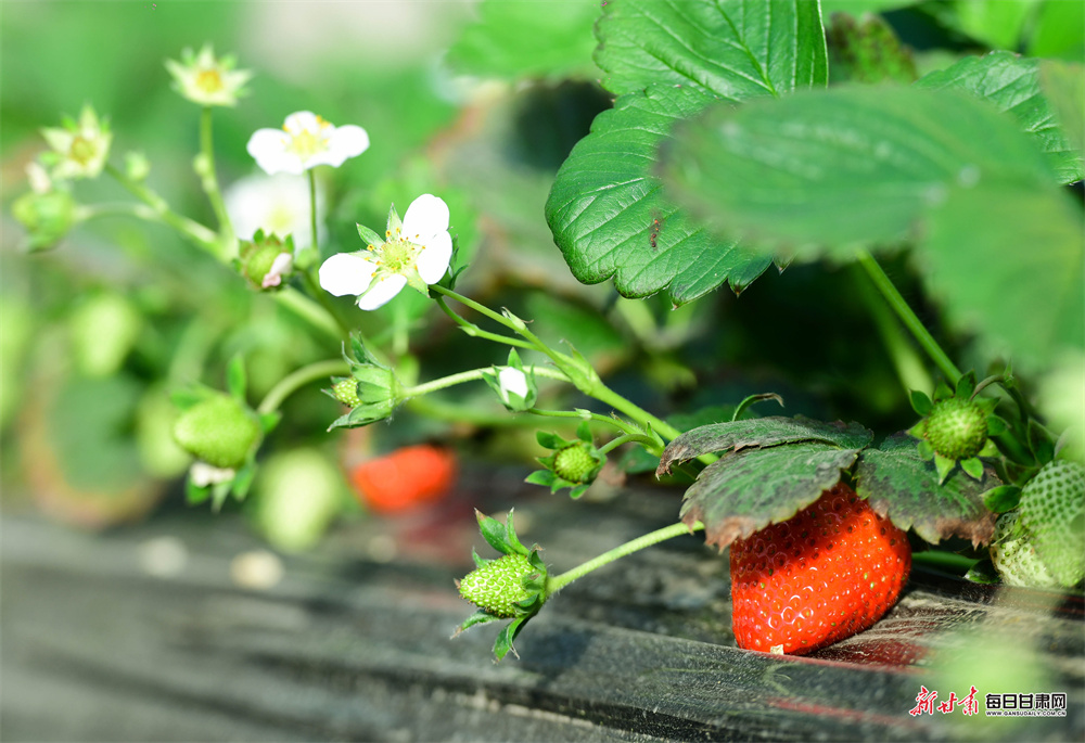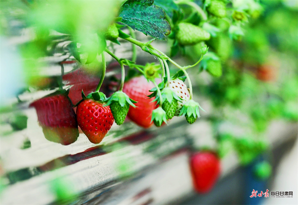 12月14日,冬日的敦煌寒意渐浓,转渠口镇创业农业园区的温室大棚里却暖意融融、春意盎然。经过改造升级的大棚面貌一新,功能愈发完善,棚内两畦草莓藤蔓舒展、硕果缀枝,两棚西红柿长势正旺、绿意喜人。眼下,鲜嫩欲滴的草莓已率先开花结果,陆续采摘上市,吸引不少客商和市民前来采购。