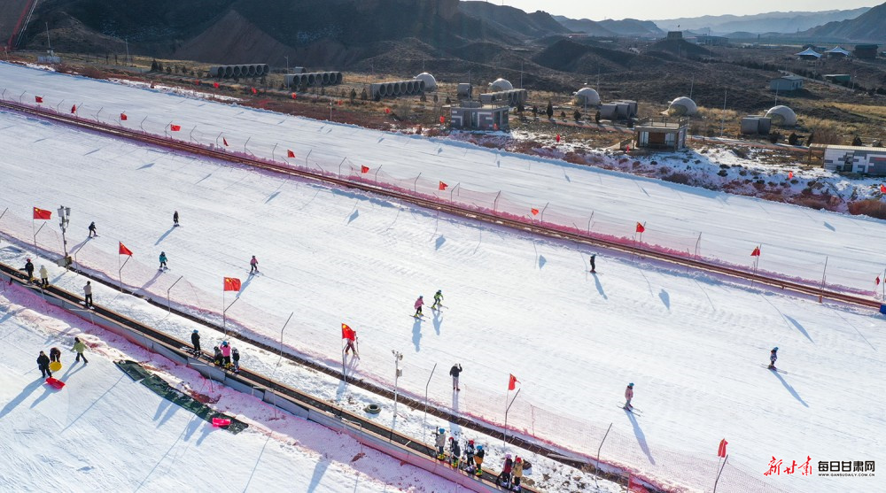 冬日,景泰县中泉镇红岘台的白银国家雪上项目训练基地热闹非凡,一批批中小学生走进这里开启冰雪研学之旅。