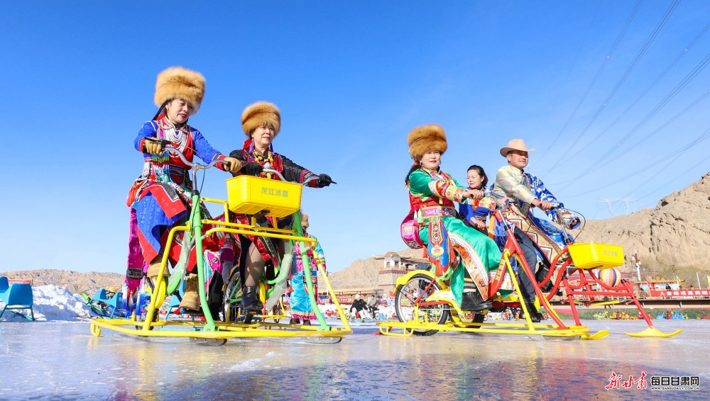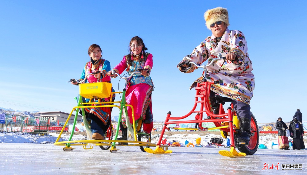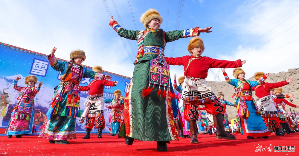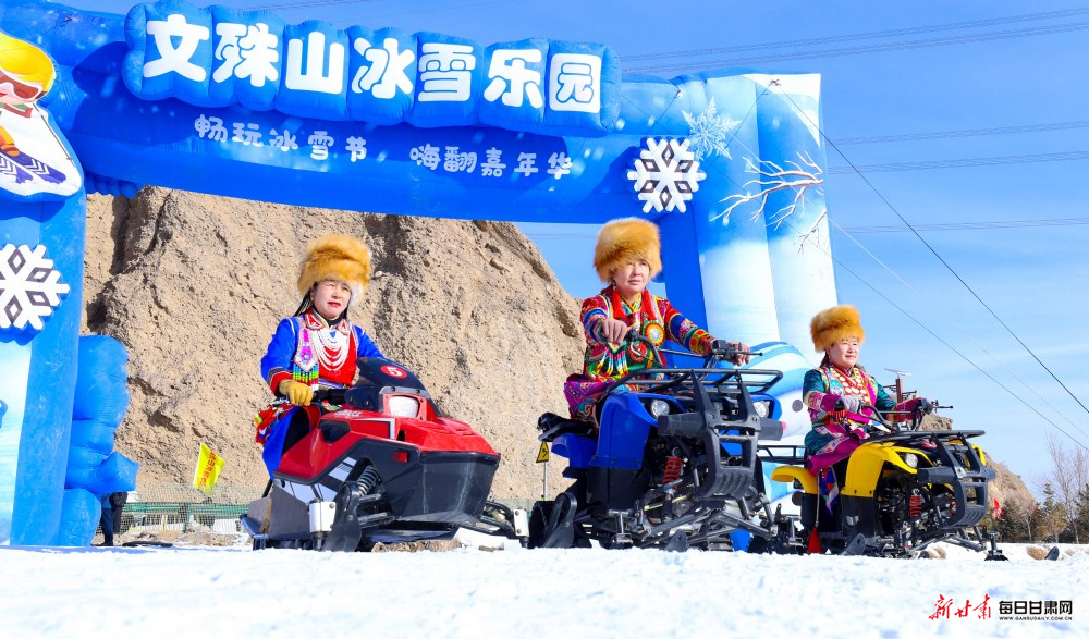 当日,肃南裕固族自治县2026年科技文化卫生“三下乡”启动仪式暨文殊山冰雪文化旅游迎新年系列活动火热启幕。来自新疆、内蒙古、青海及酒泉、嘉峪关等地的3000余名游客,与当地千名群众齐聚冰雪世界,沉浸式体验雪域狂欢。雪地拉爬牛、顶杠子、雪地摔跤等民族特色体育项目趣味十足,冰上漂移、冰上自行车、雪地摩托车、雪圈滑行追逐等冰雪运动惊险刺激,千人共舞锅庄的壮观场面更是将氛围推向高潮。