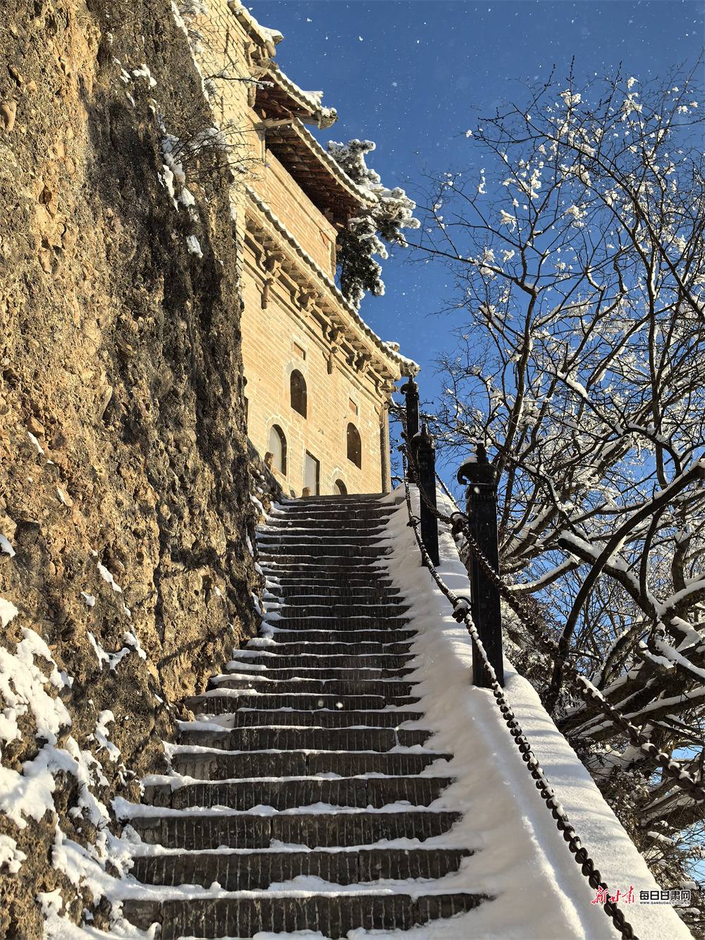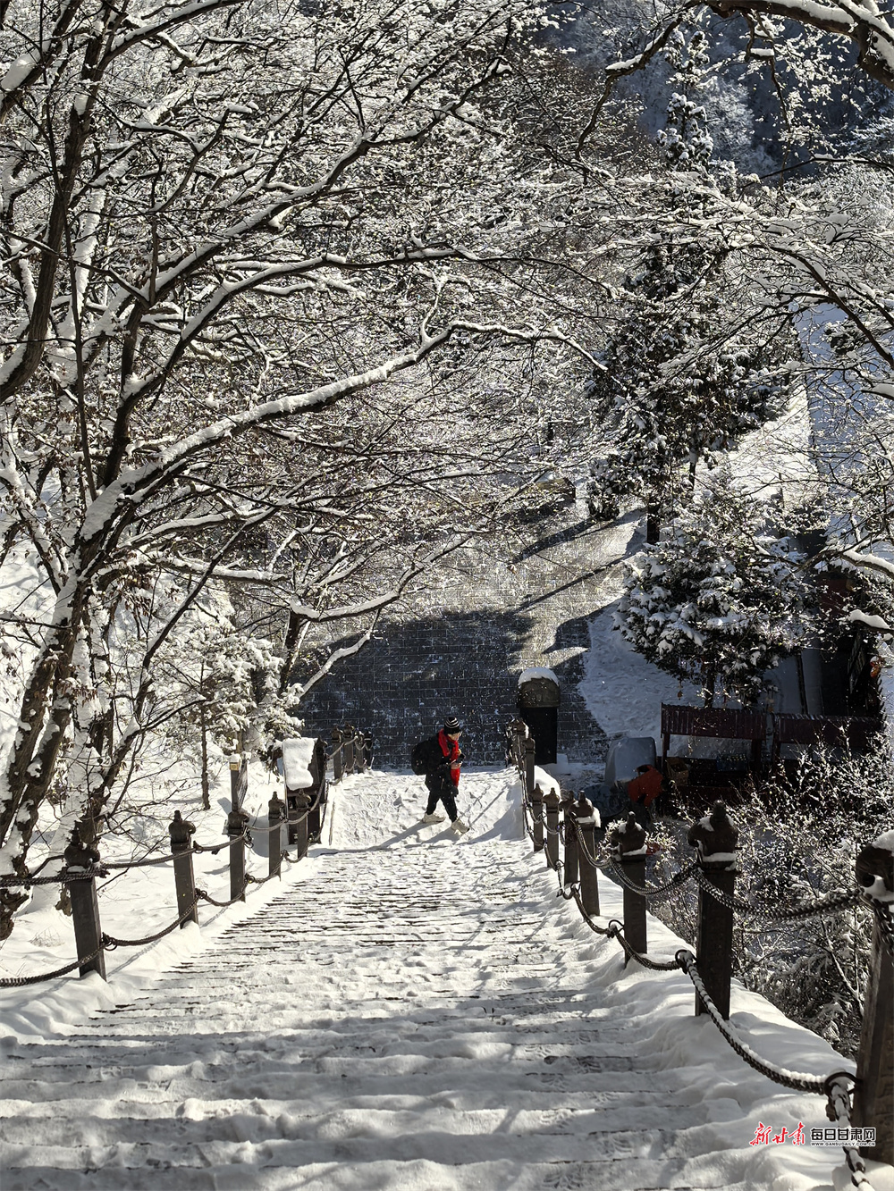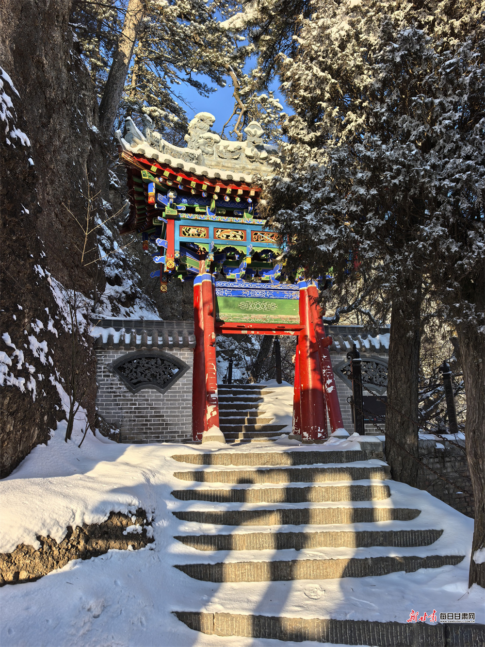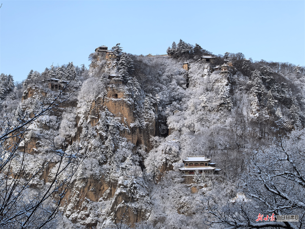冬日雪后初霁,平凉崆峒山化身绝美水墨画卷。往日雄奇的峰林被皑皑白雪尽数覆盖,危崖峭壁裹上银装,漫山树木凝霜挂雪,玉树琼枝错落有致,勾勒出冬日独有的清冷与壮阔。