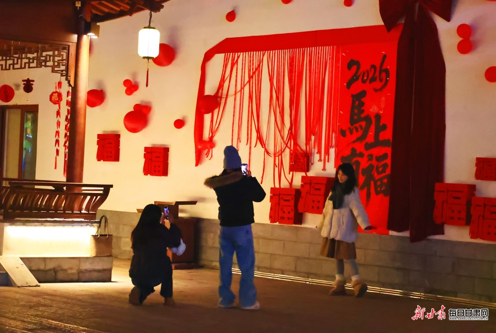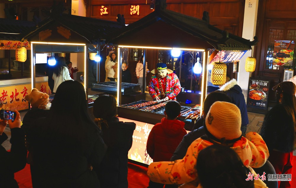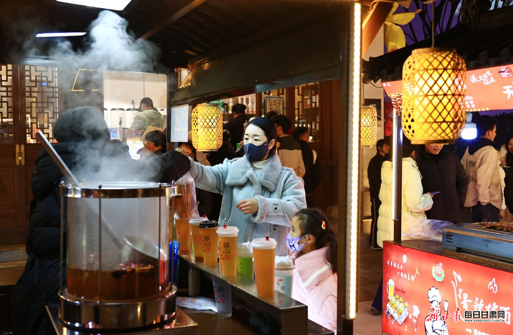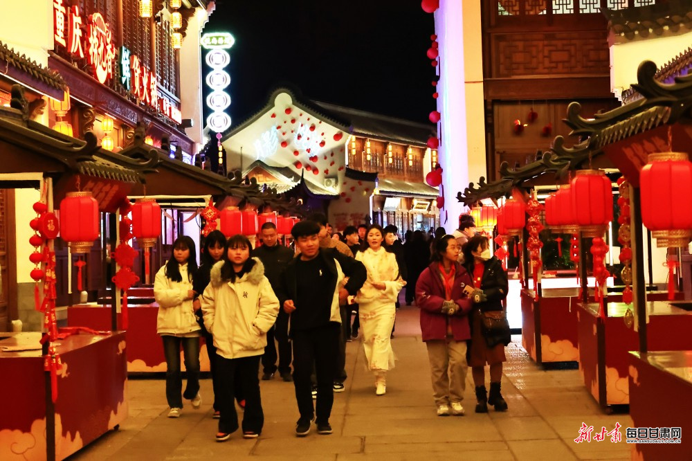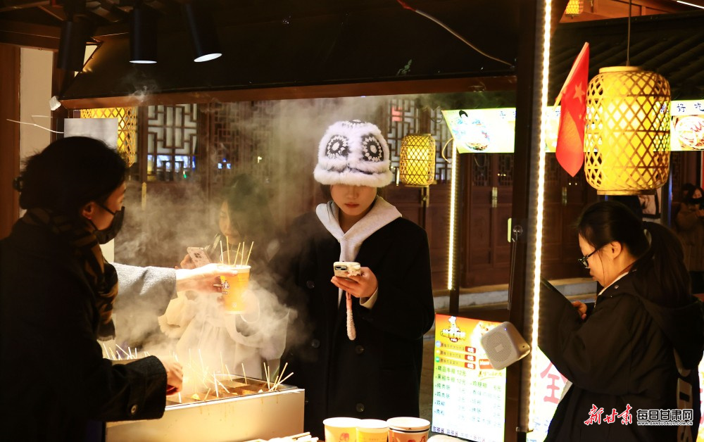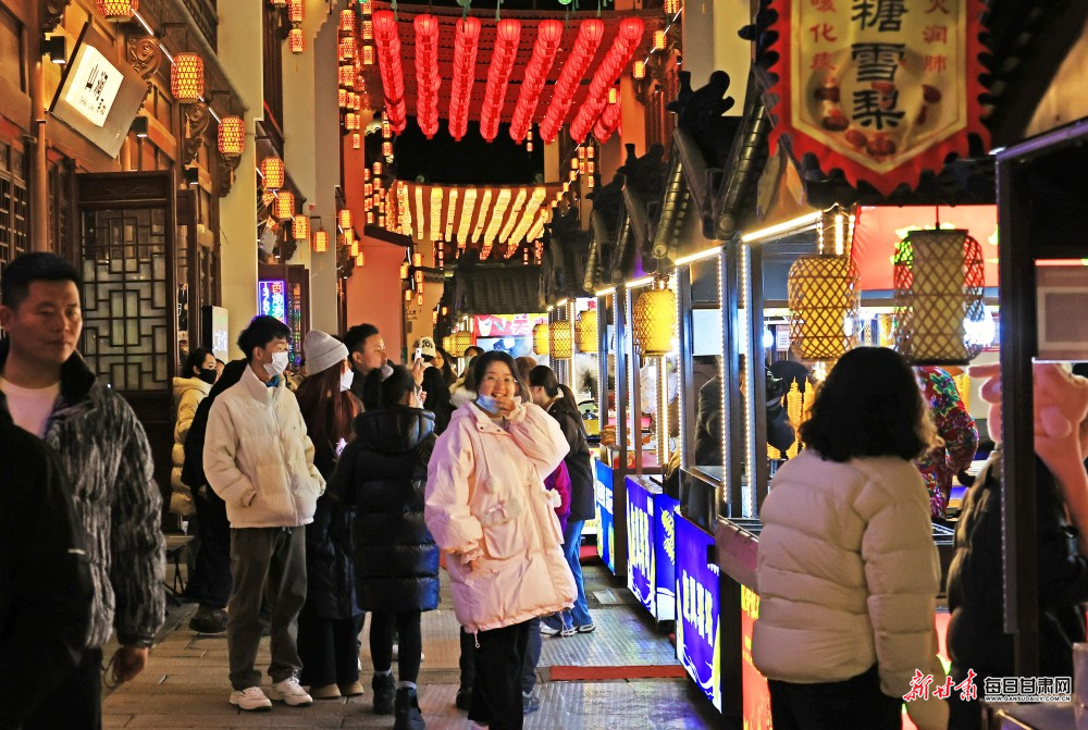 街巷间,喜庆的氛围裹挟着美食的香气弥漫开来。市民三五成群,或驻足观赏绚丽花灯,或流连于特色摊位前品尝地道美味,欢声笑语此起彼伏。璀璨灯火映照着人们的笑脸,升腾的烟火气勾勒出一幅喜乐祥和的冬日市井画卷,也预示着新一年的顺遂安康。