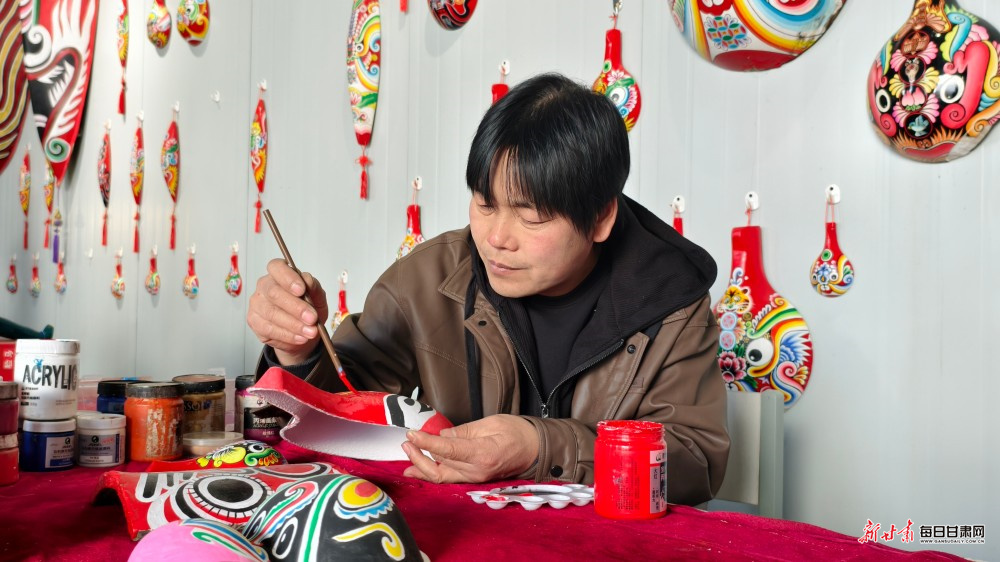 一把素朴的木勺,经匠人妙笔生花,便化作色彩浓烈、寓意吉祥的艺术珍品。在陇南徽县,这项根植于社火文化的古老非遗——马勺脸谱,正通过“非遗+文创+产业”的新模式,从农家院走向大市场,成为助力群众增收、推动乡村振兴的“文化引擎”。