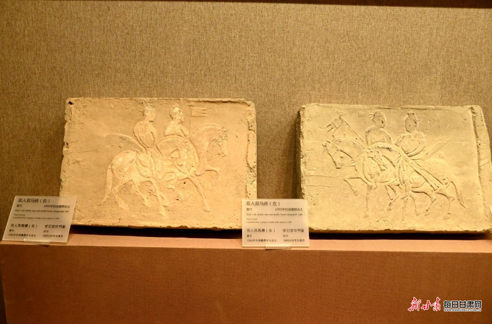 唐代双人双马砖。
