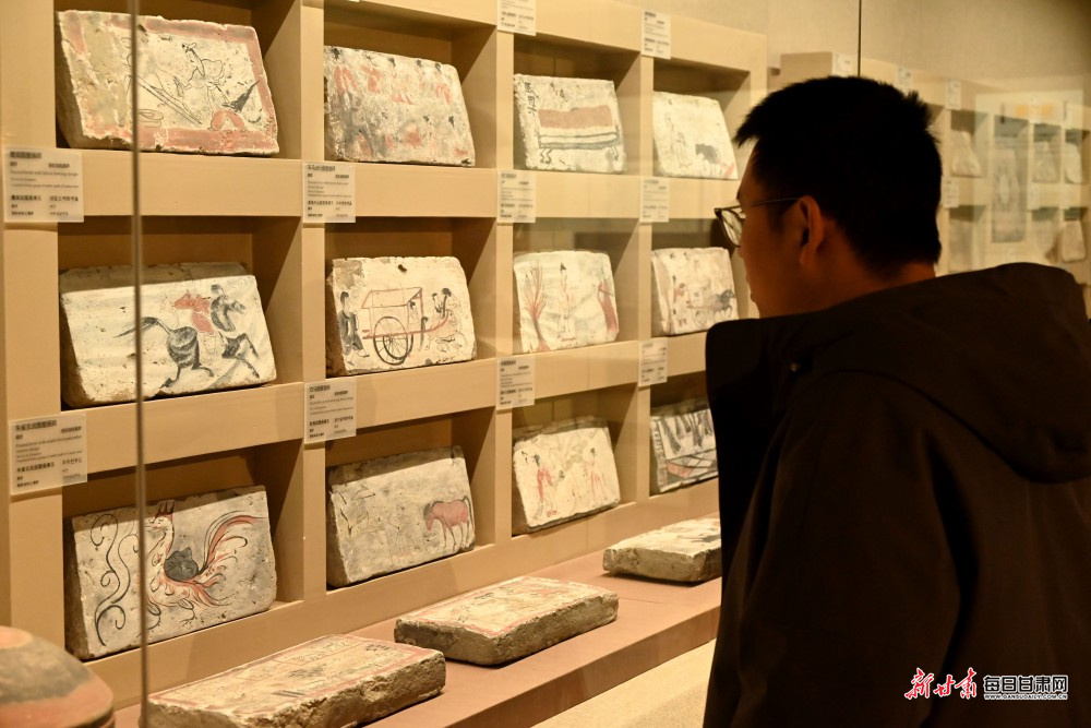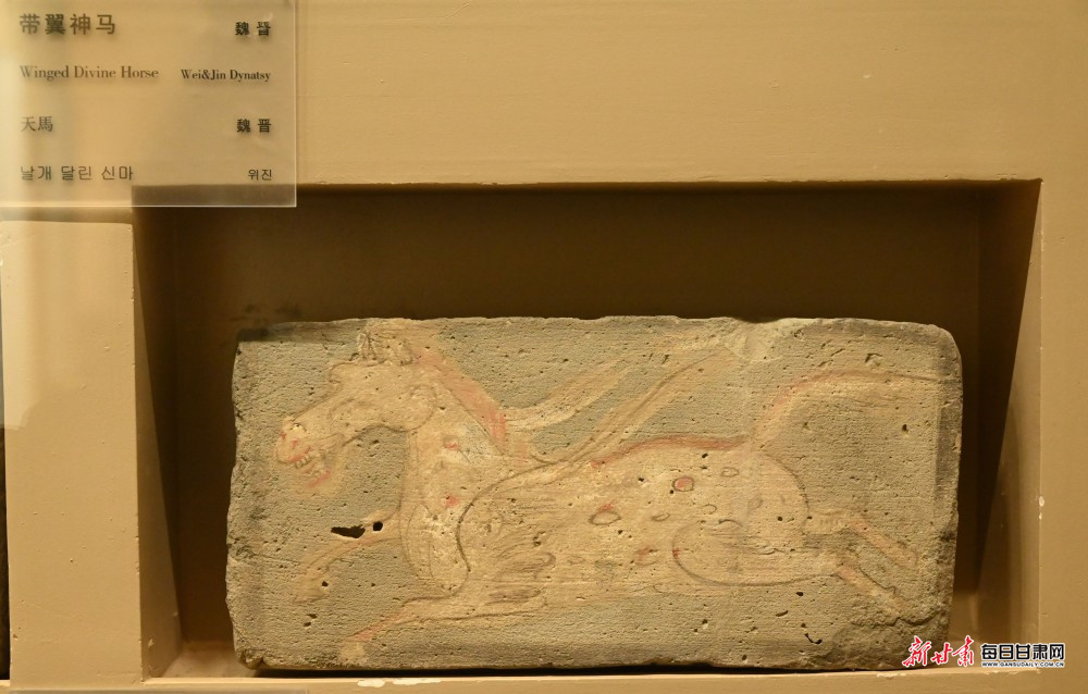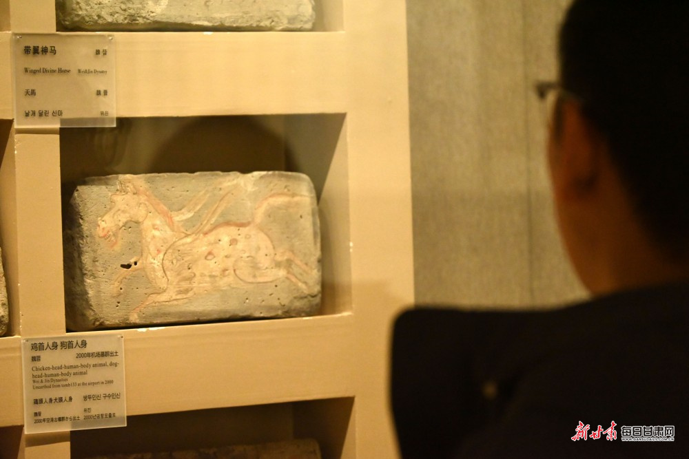 游客观赏魏晋带翼神马砖。