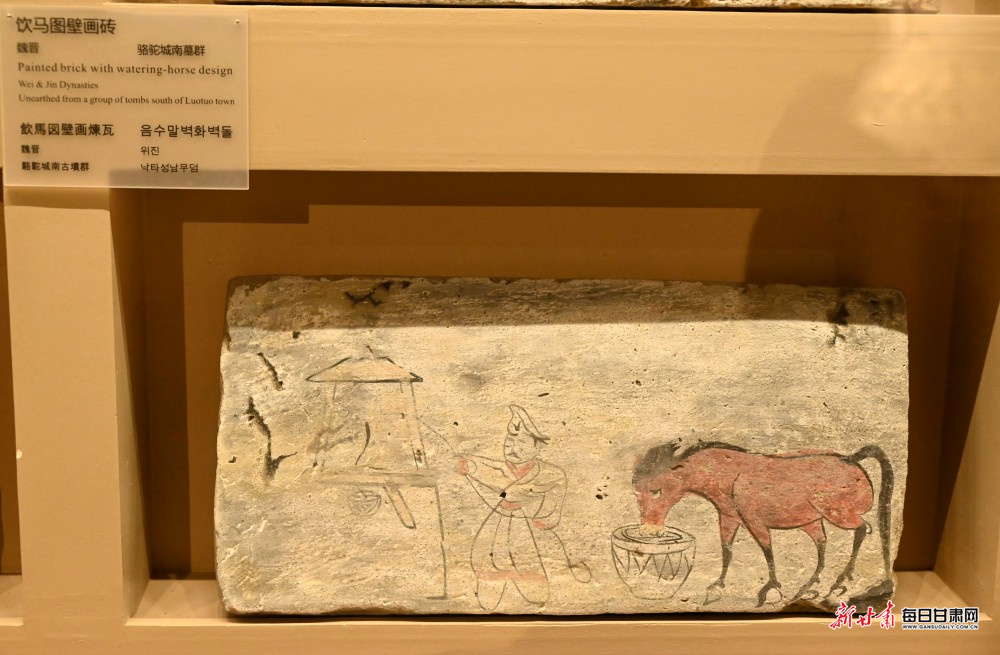 魏晋饮马图壁画砖。