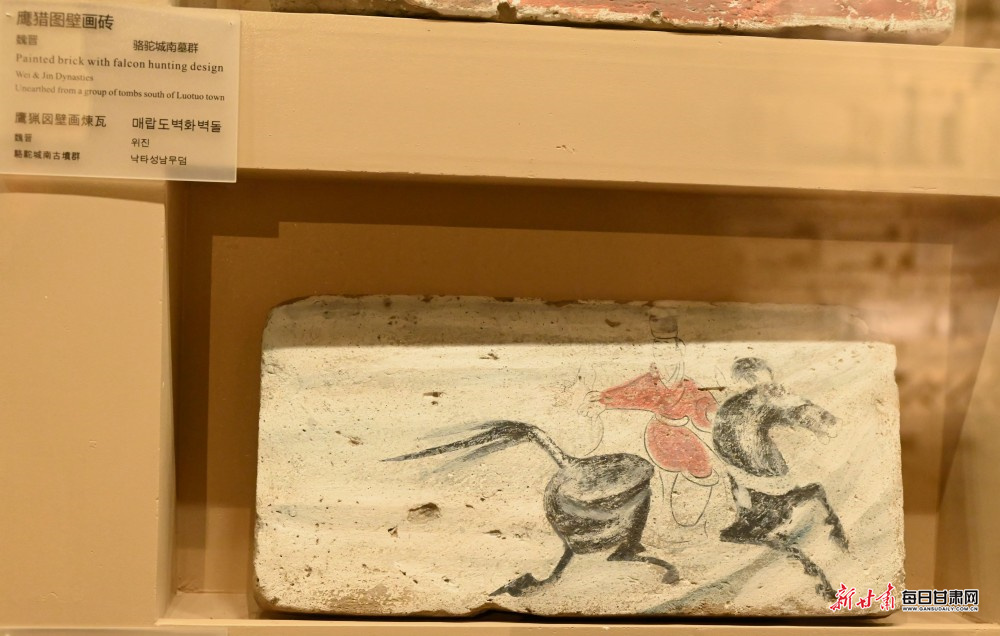 魏晋鹰猎图壁画砖。