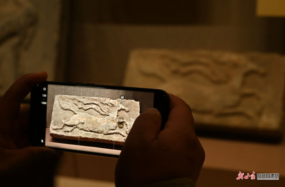 游客手机拍摄唐代天马砖。