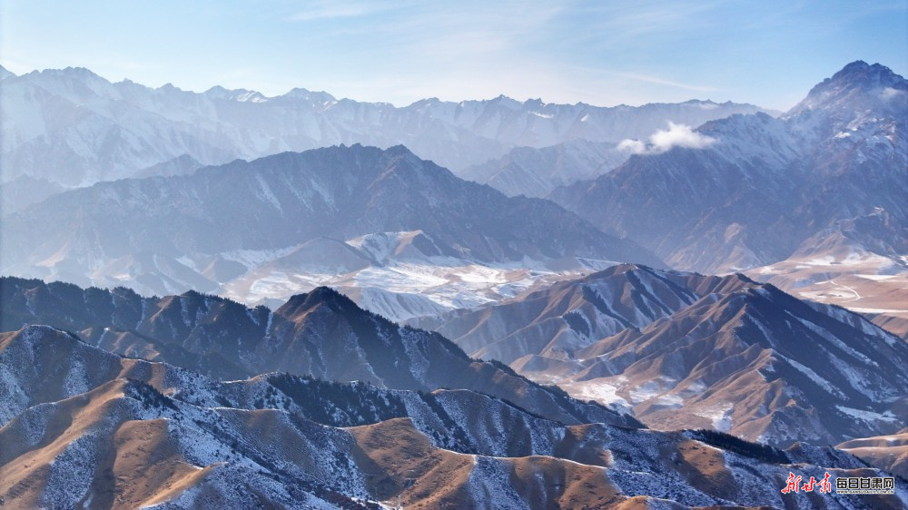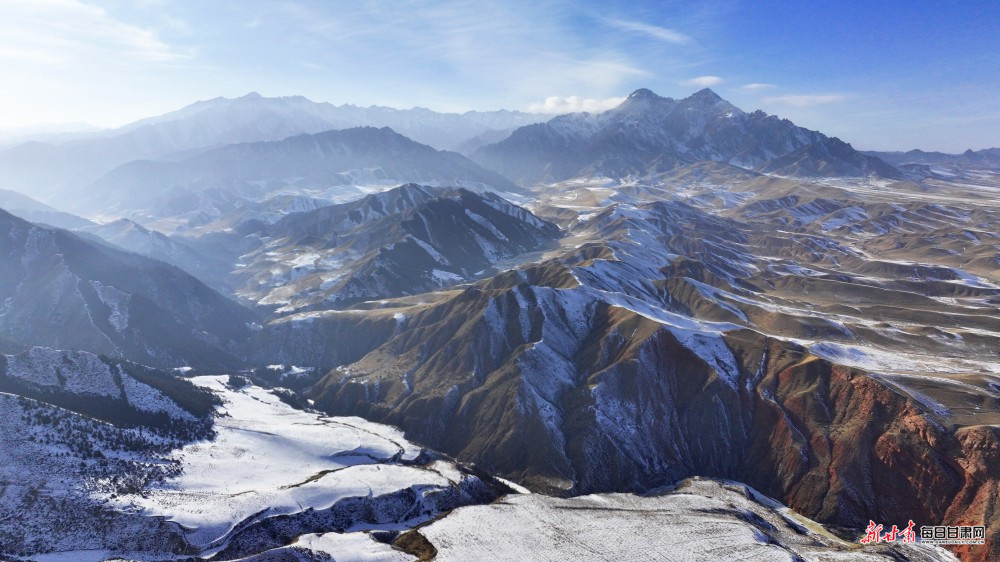 近日,一场初雪如约而至,为张掖市民乐县境内的祁连山脉披上了一层洁白的盛装。雪后初霁,连绵起伏的群山银装素裹,在阳光的照耀下,层层叠叠的山峦宛如大海中翻涌的“浪花”,气势磅礴,蔚为壮观。
