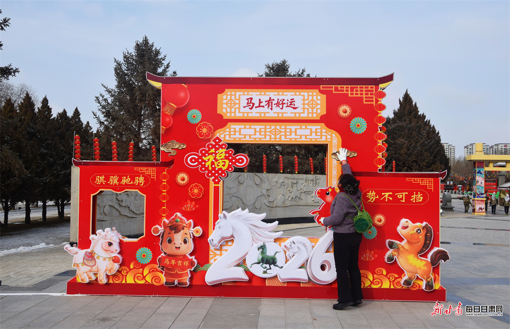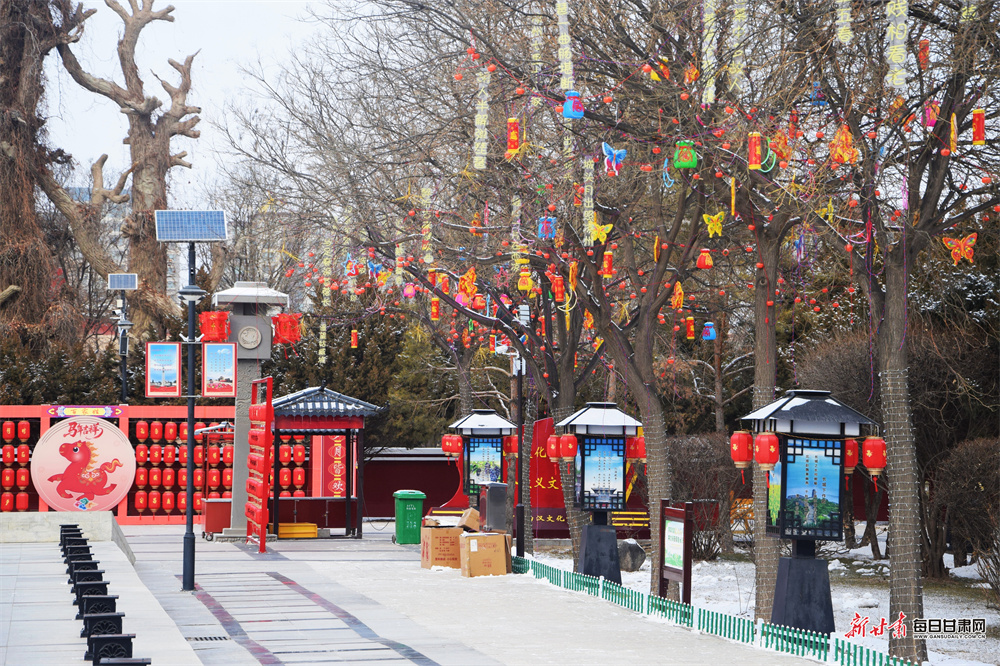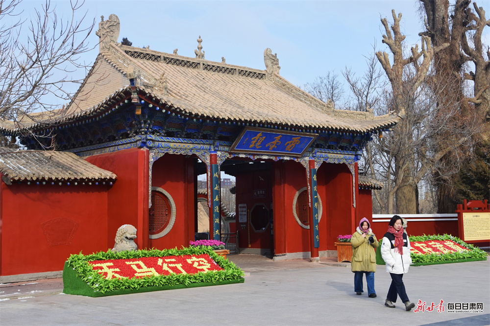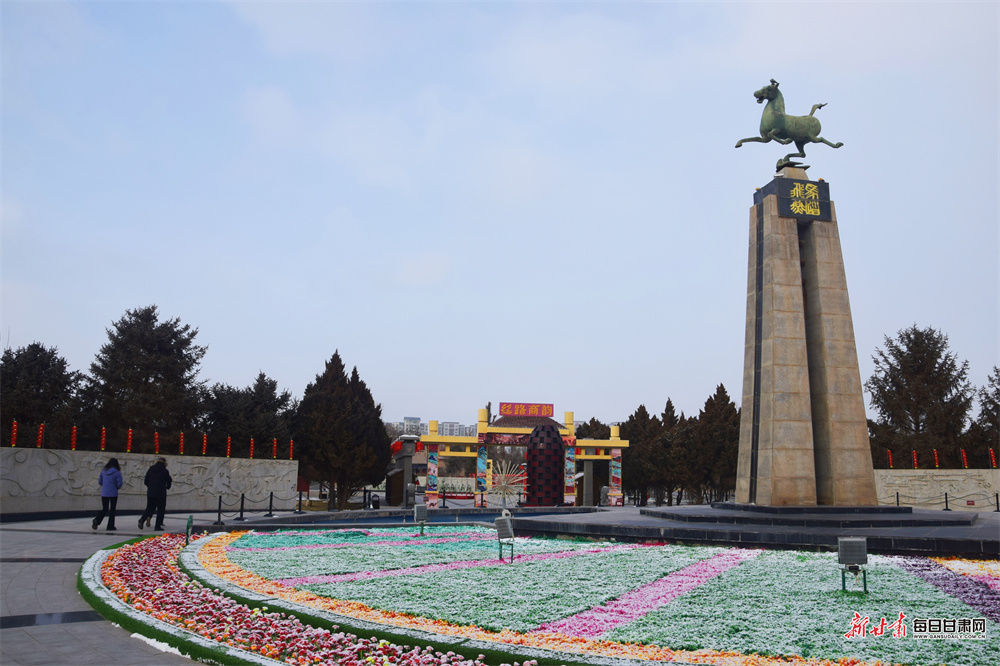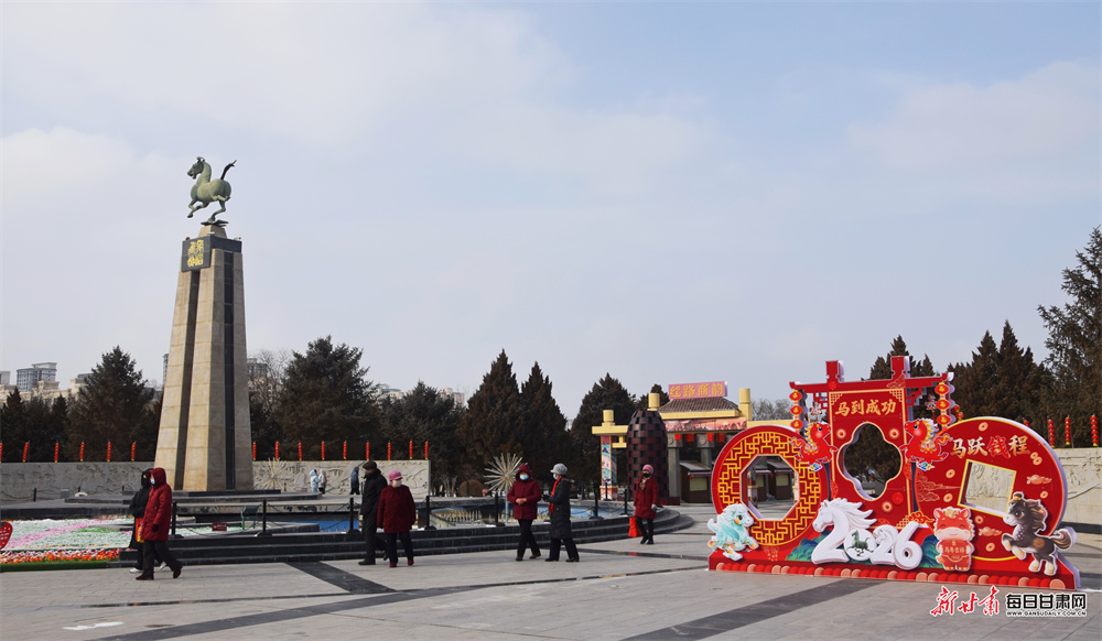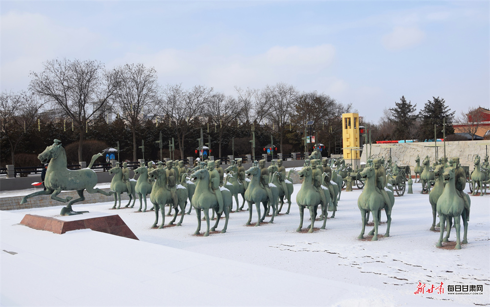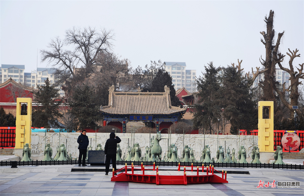 隆冬时节,武威雷台银装素裹,古朴幽静。铜奔马仪仗俑在白雪映衬下更显汉韵威仪。随着春节临近,景区内红灯高悬,处处洋溢着迎春纳福的喜庆气息,吸引游客前来感受古今交融的独特魅力。