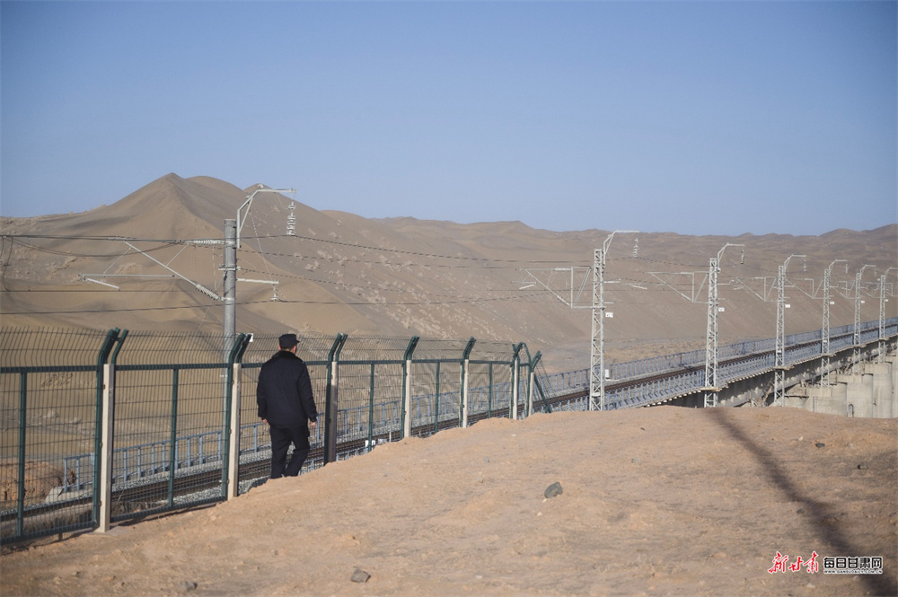 “我们的工作就是和大风赛跑,把隐患消灭在萌芽状态。”玉苏甫拜的话语朴实无华,却透着不容置疑的坚定。寒来暑往,护路队员们用双脚丈量着10.6公里的钢铁线路,用坚守抵御着库姆塔格沙漠的肆虐风沙。他们的脸庞被晒得黝黑,双手被磨得粗糙,却始终坚守在护路一线,用责任与担当筑起一道坚不可摧的安全屏障,默默守护着这条穿行在沙海之中的“钢铁动脉”安全畅通,让每一列列车都能平稳驶过这片苍茫戈壁。
