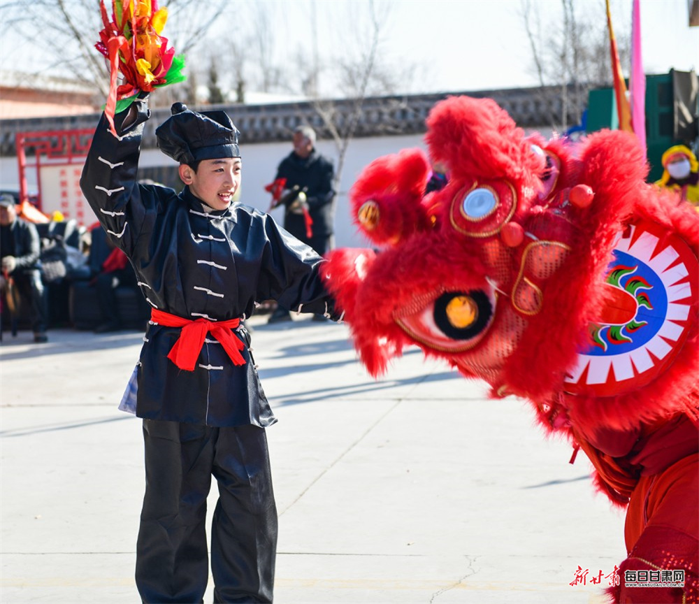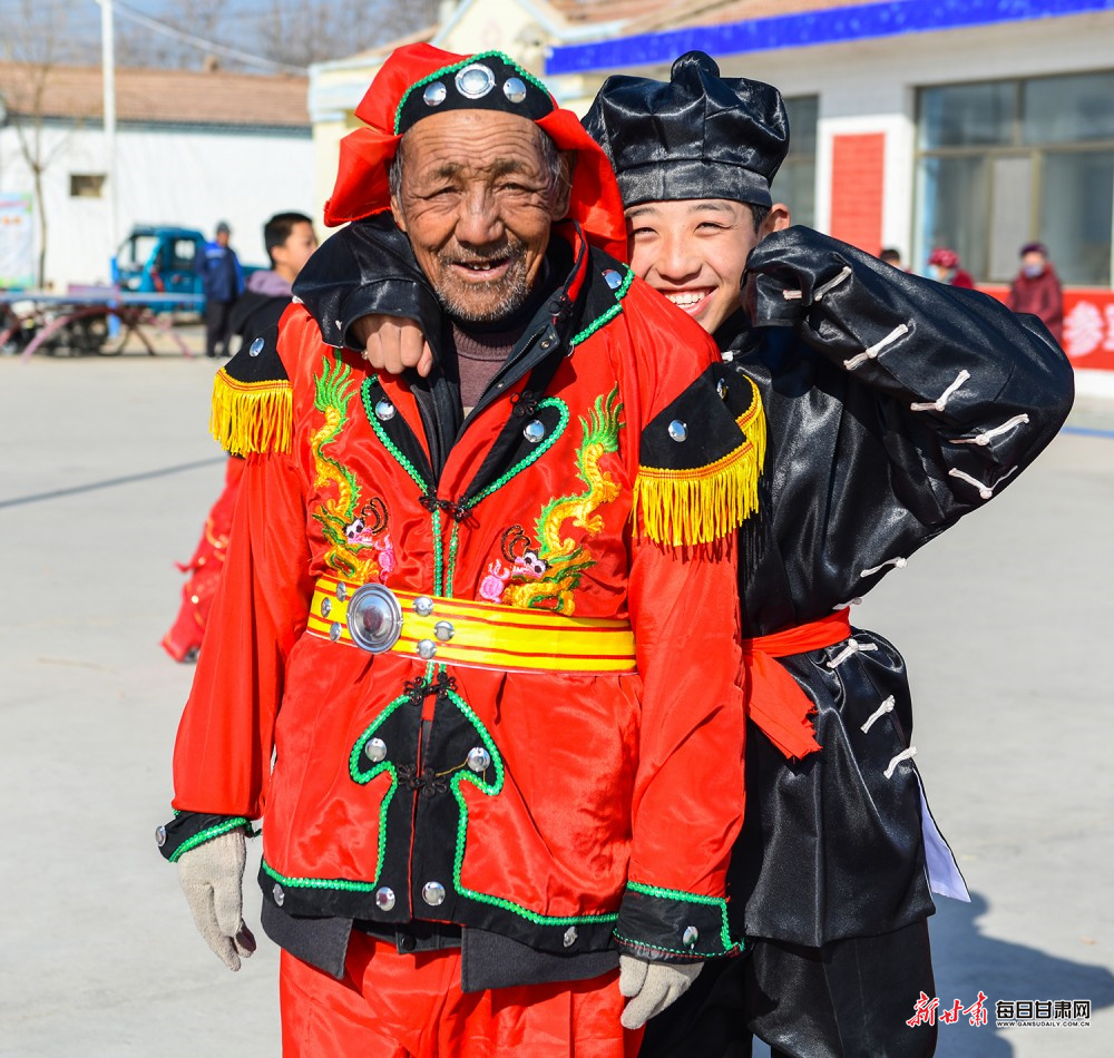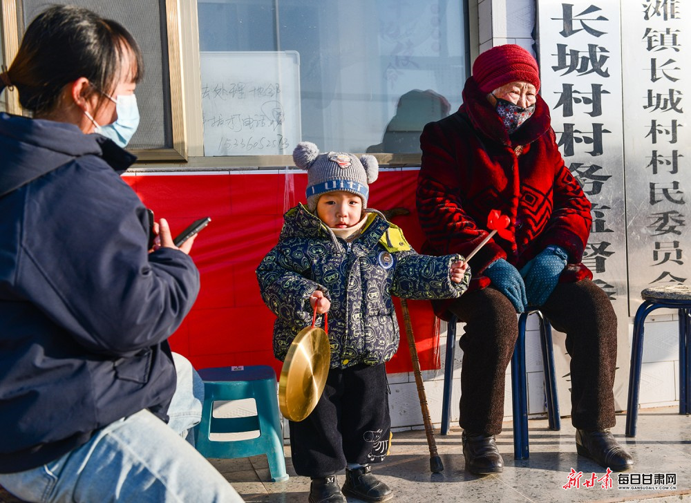 老人手持镲钹,节奏稳健有力;少年身披狮皮,腾挪跳跃,一招一式有板有眼。祖孙俩一老一少、一静一动,在锣鼓声中共同演绎着对传统文化的热爱与传承,成为今年长城村社火队里一道温暖而亮眼的风景线。