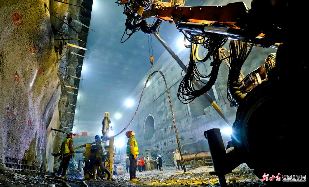 2月2日,位于祁连山北麓、黑河出山口左岸的张掖盘道山抽水蓄能电站地下发电厂房建设现场,工程建设者们正紧张忙碌地进行系统锚索支护作业。