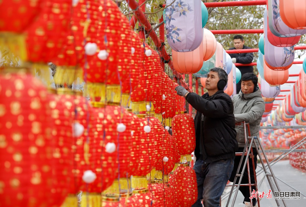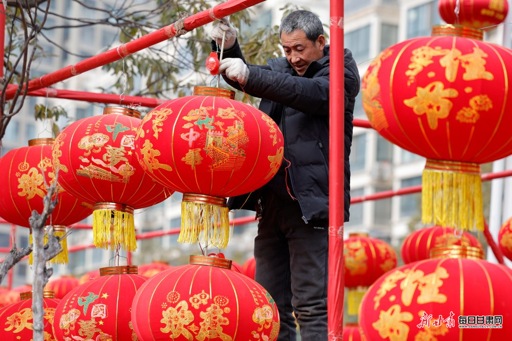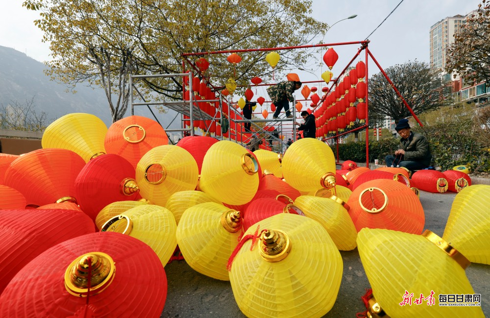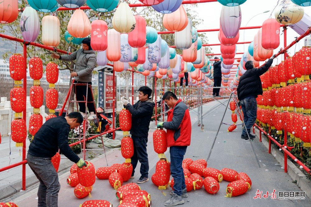 2月1日,陇南市区各街道上,工人们正加紧悬挂各式新春灯饰,以红火的扮靓装扮迎接新春佳节到来。一盏盏灯饰错落排布在街头巷尾,让城市年味愈发浓郁,也为即将到来的新春营造出喜庆祥和的氛围。