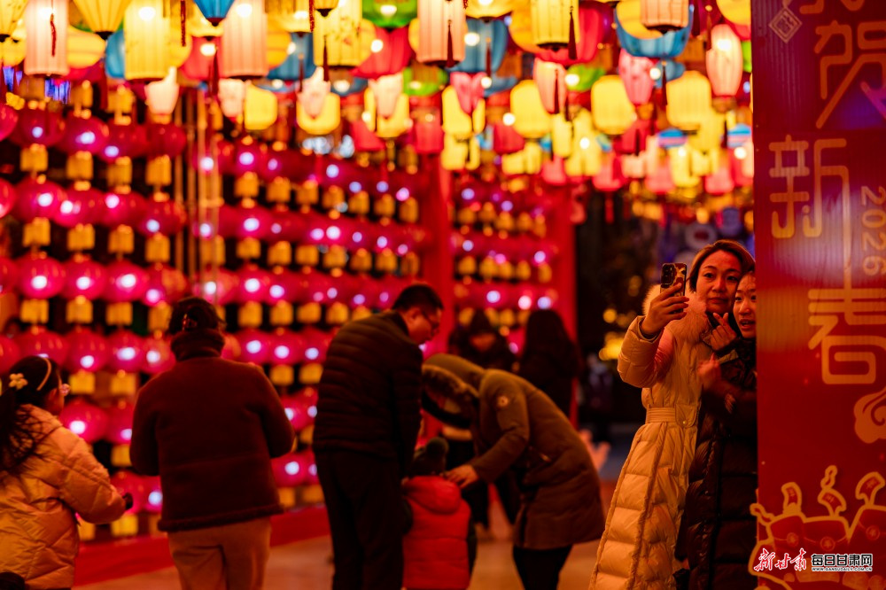 夜幕降临,华灯初上,一串串红灯笼、一组组创意彩灯绵延舒展,网红灯饰点缀枝头,光影交错、璀璨夺目。暖光与夜色相融,年味与烟火共生,处处流光溢彩、美不胜收,勾勒出喜庆祥和的新春画卷,也让市民在璀璨灯火中感受浓浓的年韵乡愁。
