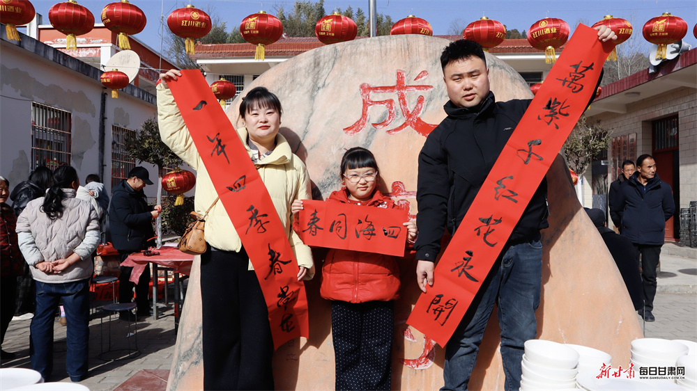 活动现场张灯结彩,年味十足。文艺展演热闹开场,舞狮、舞蹈、独唱等节目轮番上演,喜庆祥和的氛围感染着在场每一位老人。镇领导为老人们送上鲜花与新春祝福,书法爱好者现场挥毫泼墨,赠送春联福字,让老人们在墨香中感受浓浓年味儿。