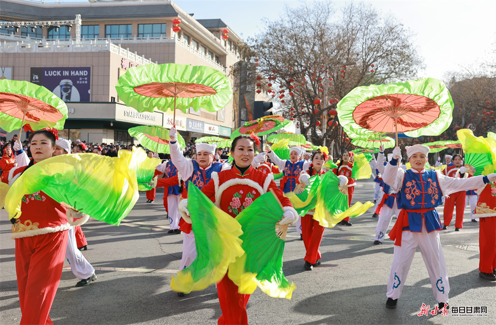 精彩的展演为市民和游客献上了一场年味十足、气势恢宏的民俗文化盛宴,营造出喜庆祥和、欢乐奋进的节日氛围,展现出酒泉人民红红火火过大年的幸福景象。