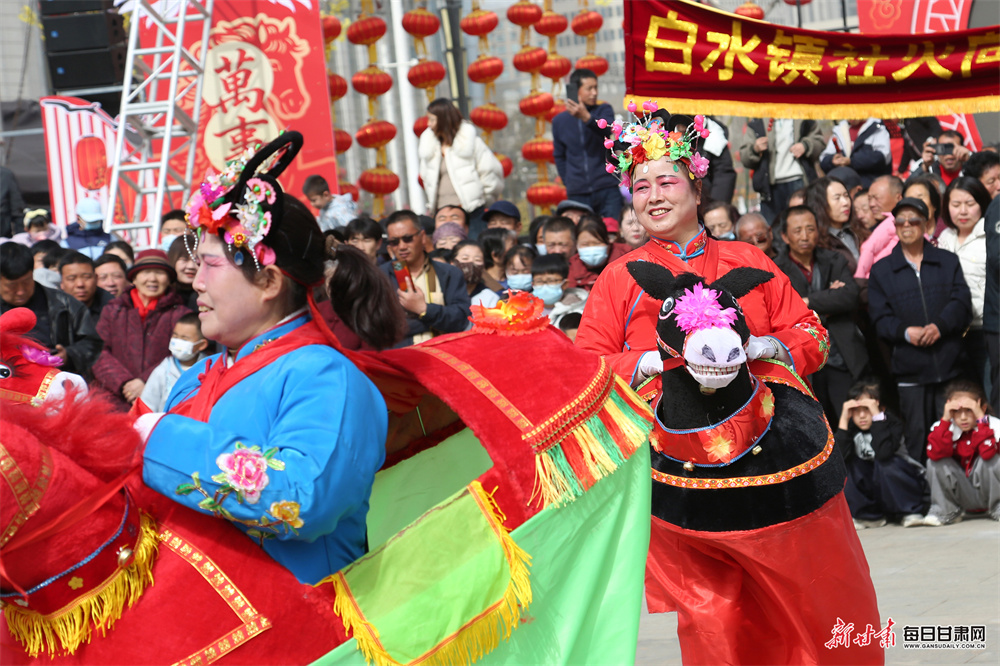 春节期间,平凉市崆峒区“非遗社火闹新春 民俗盛宴庆团圆”集中展演热闹上演。舞龙舞狮、划旱船、跑竹马、春官说诗、曲子戏等特色民俗节目轮番登场,精彩纷呈。市民、游客驻足观赏,在浓郁的乡土风情里感受喜庆祥和的年味。