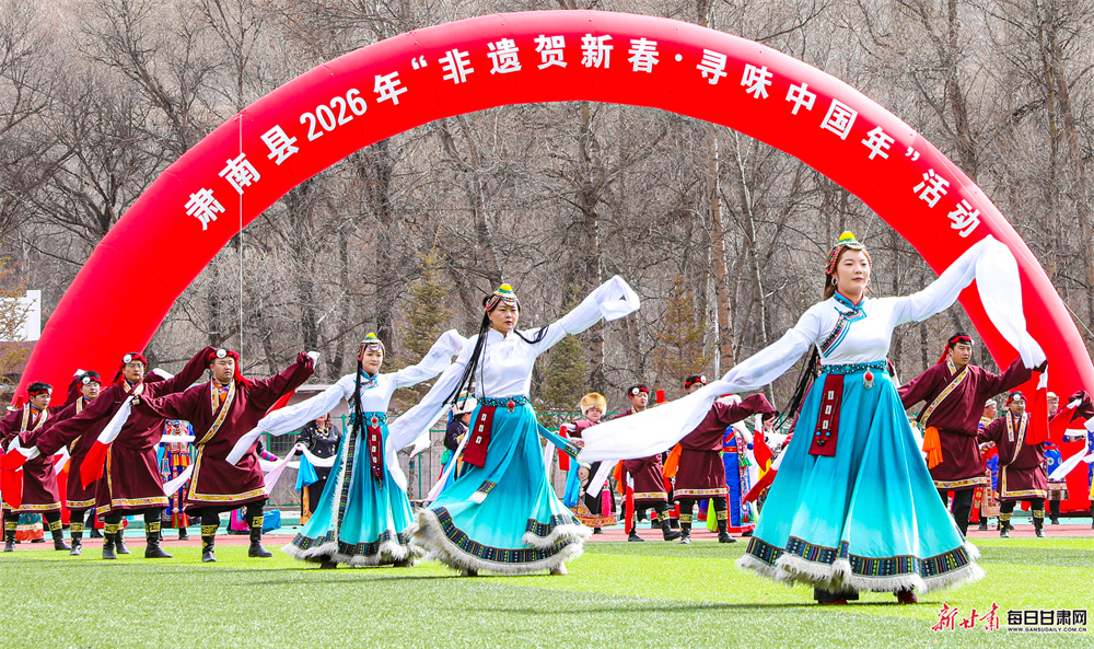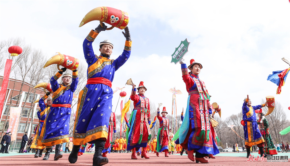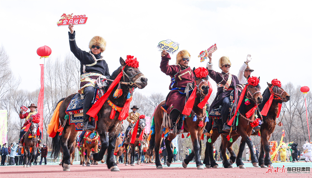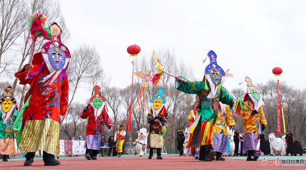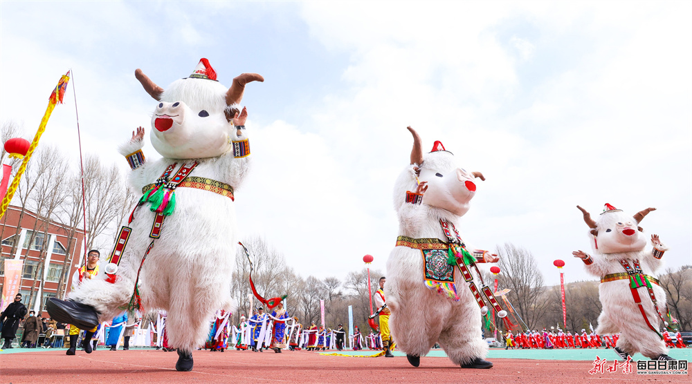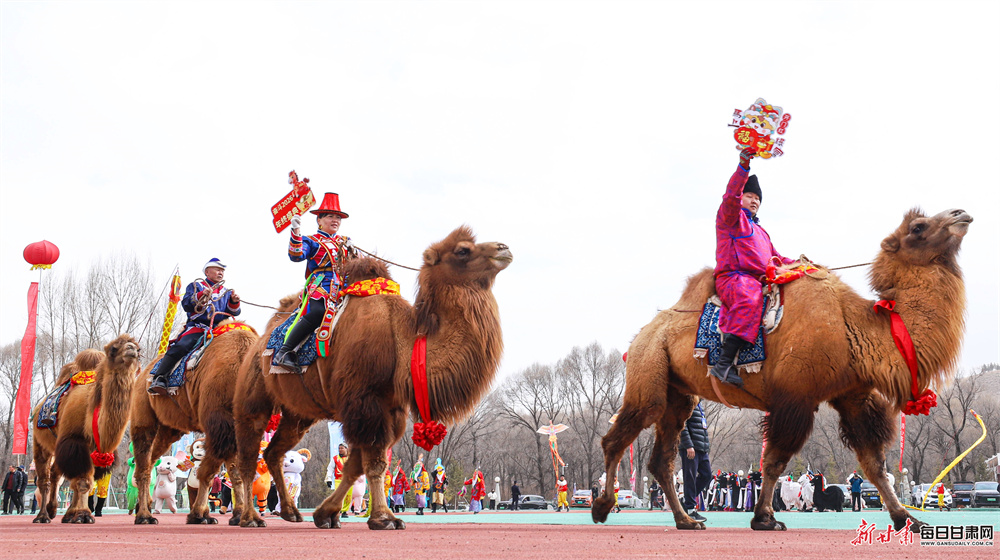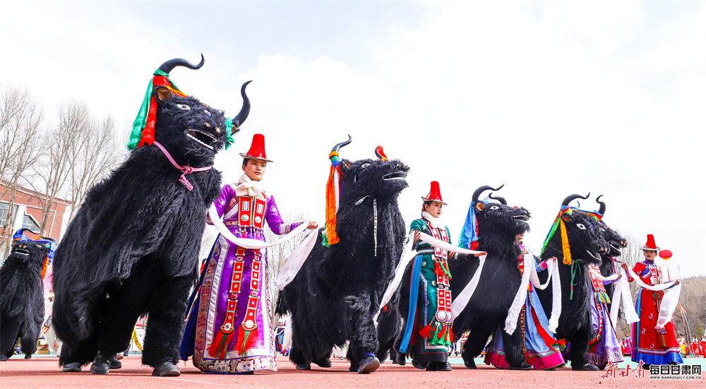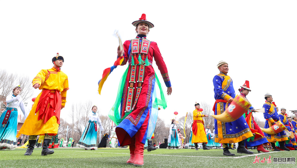 活动现场,来自汉族、裕固族、藏族、蒙古族、土族等21个民族的320余名演职人员欢聚一堂,自编自导了一场精彩纷呈的民俗盛宴。展演中,大秧歌《赞美我们的新生活》舞姿矫健,马队骆驼队巡游彰显草原风情,牧牛舞、藏戏等非遗节目韵味悠长,还有独具特色的民族服饰展示与十二生肖贺新岁表演轮番登场。