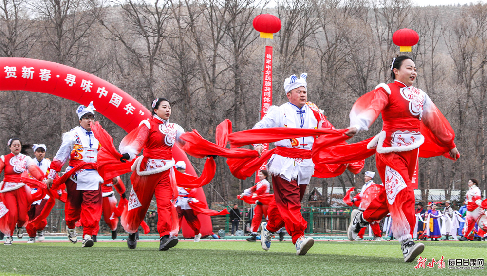 2月25日,张掖市肃南裕固族自治县“石榴花开籽籽同心”民族团结庆团圆社火展演迎元宵活动,在少数民族传统项目体验区举行。