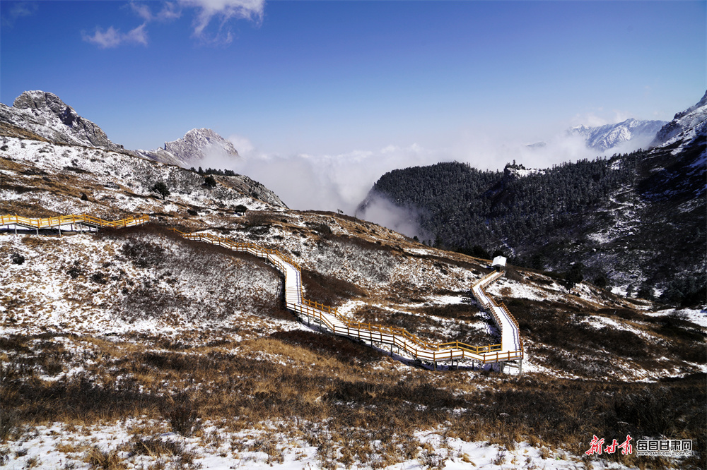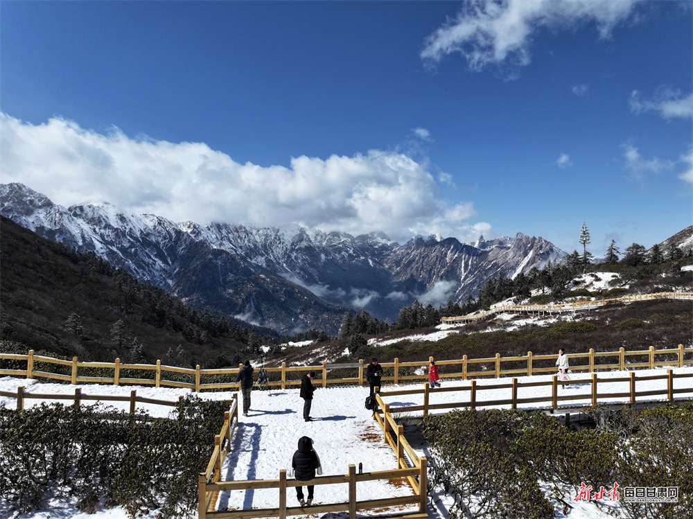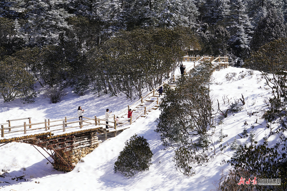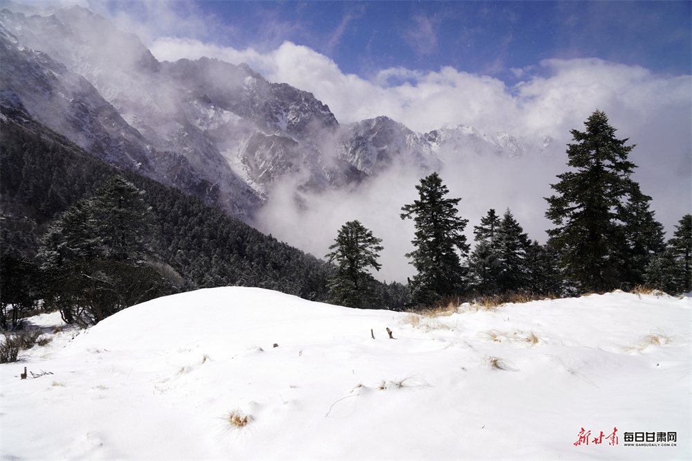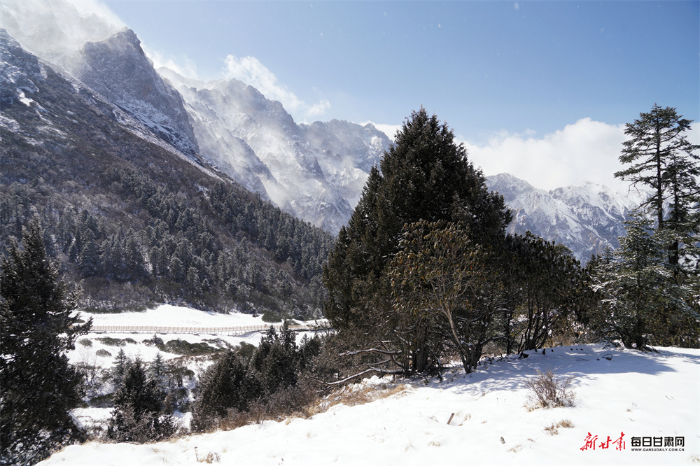 仲春时节,宕昌县喜降瑞雪,素有“人间仙境”美誉的官鹅沟景区被皑皑白雪覆盖,银装素裹,宛若童话世界。
