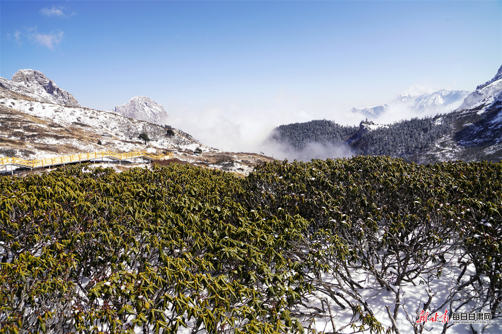 白雪皑皑的山峦与苍翠挺拔的苍松相映成趣,山间云雾缭绕,变幻无穷。春日暖阳下,冰雪消融,水珠顺着枝叶轻轻滑落,为原本静谧的山谷增添了几分灵动与生机。蓝天、白雪、青松、云海,共同构成了一幅意境深远的水墨丹青,让人心旷神怡。游人漫步其中,仿佛穿梭于画卷之间,用镜头定格这难得的春日美景,尽情享受官鹅沟独特的生态魅力。