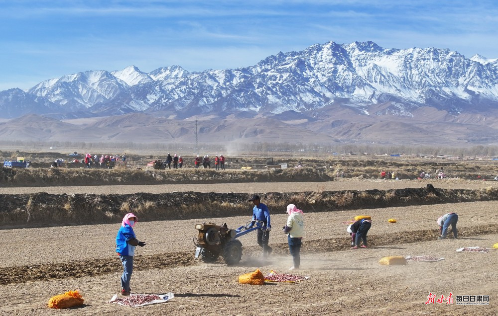 近年来,民乐县立足当地气候与土壤优势,科学调整种植结构,积极引导适宜区域发展集中连片种植。通过推动规模化经营、科学化管理、产业化发展,当地做大做强“紫皮大蒜”特色品牌,有效打通了助农增收渠道。目前,全县紫皮大蒜种植面积常年稳定在3万亩左右,特色产业已成为乡村振兴、群众稳定增收的重要支撑。