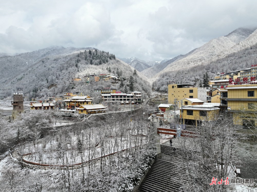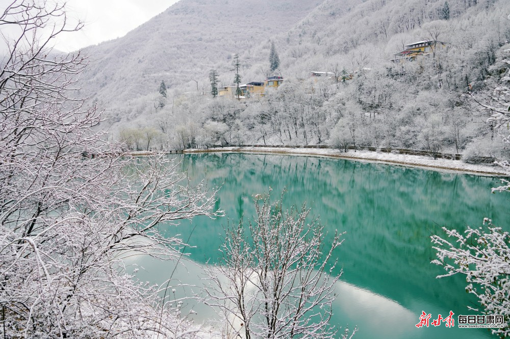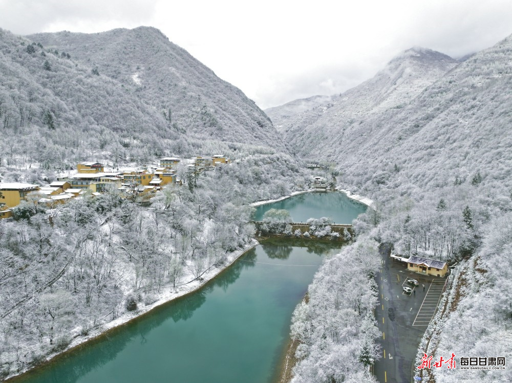 初春的宕昌官鹅沟,邂逅一场诗意春雪。飞雪如絮,错落有致地飘落在青山翠谷间,将整个景区染成一幅素净雅致的水墨长卷。