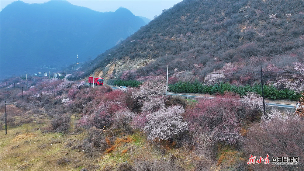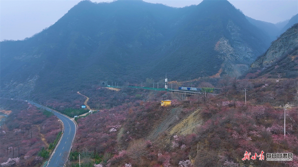 在S203沿线的北山坡,桃花次第盛开,漫山粉白顺着山势铺展,如云似霞。暖阳下,花瓣薄如蝉翼;微风过处,花浪翻涌,香气四溢。那是崇信最奔放的春日告白,热烈而动人。