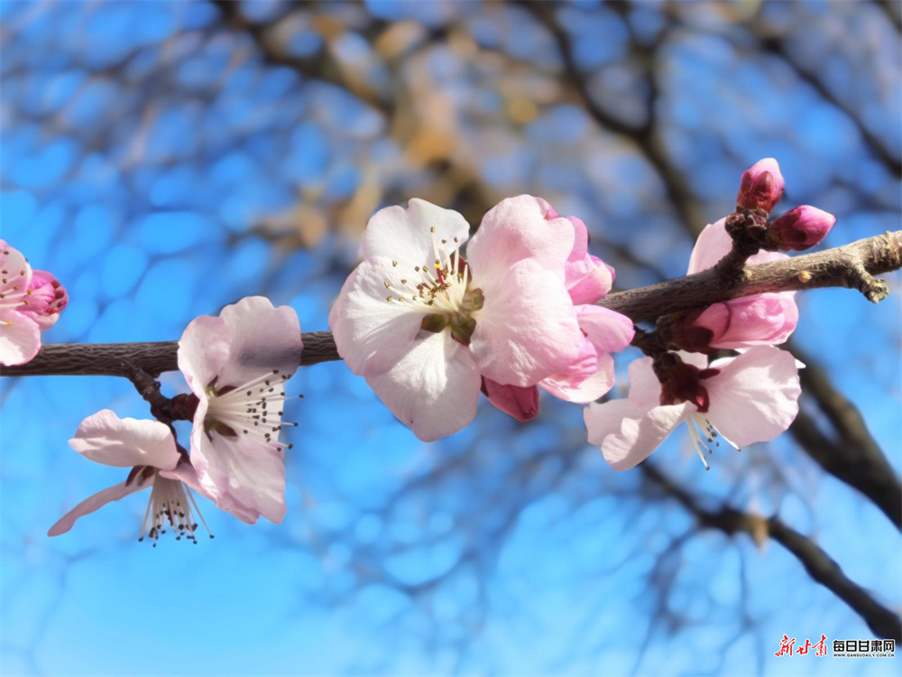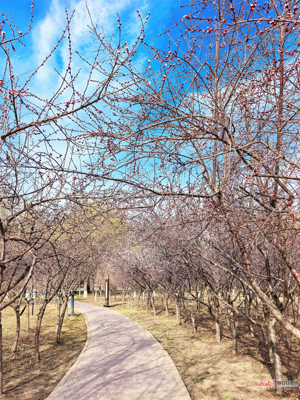 天马湖畔是感受凉州春日的绝佳之地。暖阳轻洒,微风和煦,草木的清香扑面而来。桃花、李树在春光中舒展枝丫,粉嫩的花苞携着暖意悄然苏醒,勾勒出春日独有的浪漫景致。