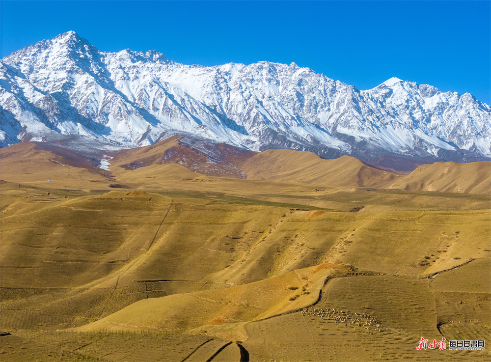 近日,祁连山北麓的张掖市肃南裕固族自治县高山草原,结束为期近半年农区借牧生活的马蹄藏族乡牧民返归草原牧场放牧羊群。