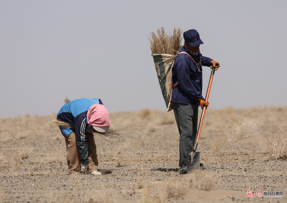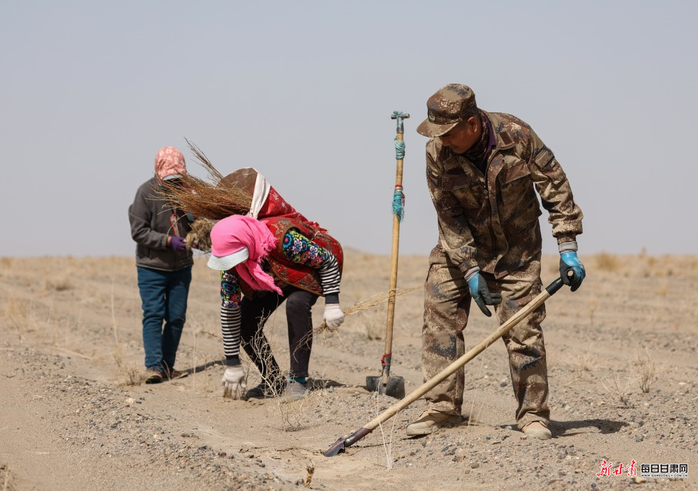 春日回暖,风沙渐起,正是防沙治沙、植树增绿的关键时节。3月24日,在巴丹吉林沙漠西缘的酒泉市金塔县大漠农林生态产业股份公司万亩梭梭种植基地里,治沙工人抢抓农时,俯身补种梭梭苗,一株株新绿扎根沙地,成为阻挡黄沙蔓延的坚实防线,一幅春日治沙植绿的生动图景在大漠间徐徐展开。