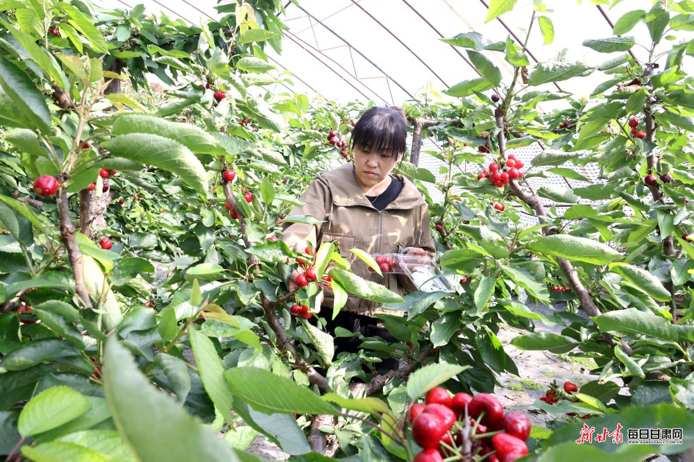 春暖时节,瓜果飘香。庆阳市西峰区肖金镇米王村梓琪樱桃庄园设施大棚内,一颗颗樱桃色泽艳丽、饱满多汁,陆续迎来成熟上市季,处处洋溢着丰收的喜悦。