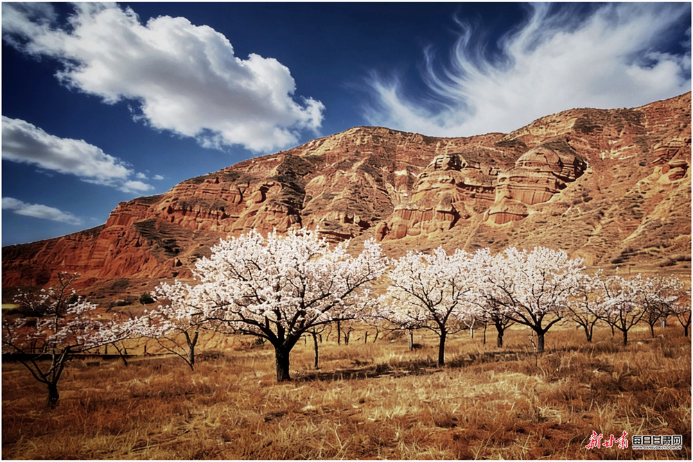 四月初,暮春风暖,兰州市永登县树屏镇迎来一年一度杏花盛放。一入村口,漫山杏花映入眼帘,如云似雪,粉白相间。微风拂过,花瓣轻扬飘落,漫步乡间小径,宛若置身花雨幻境,连空气都萦绕着淡淡清香。