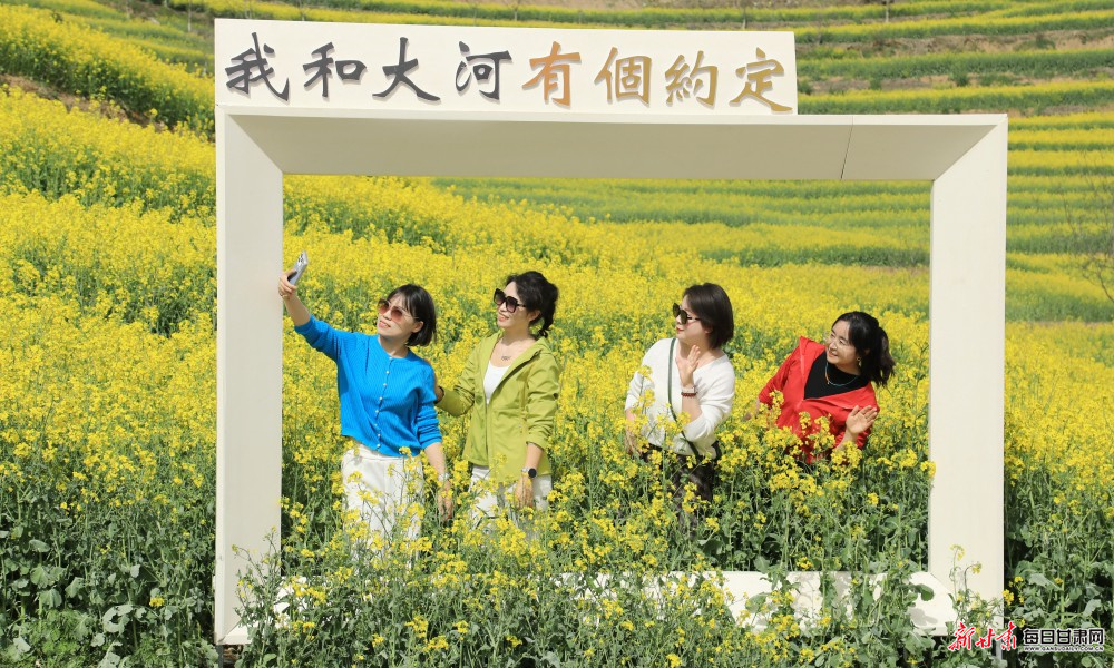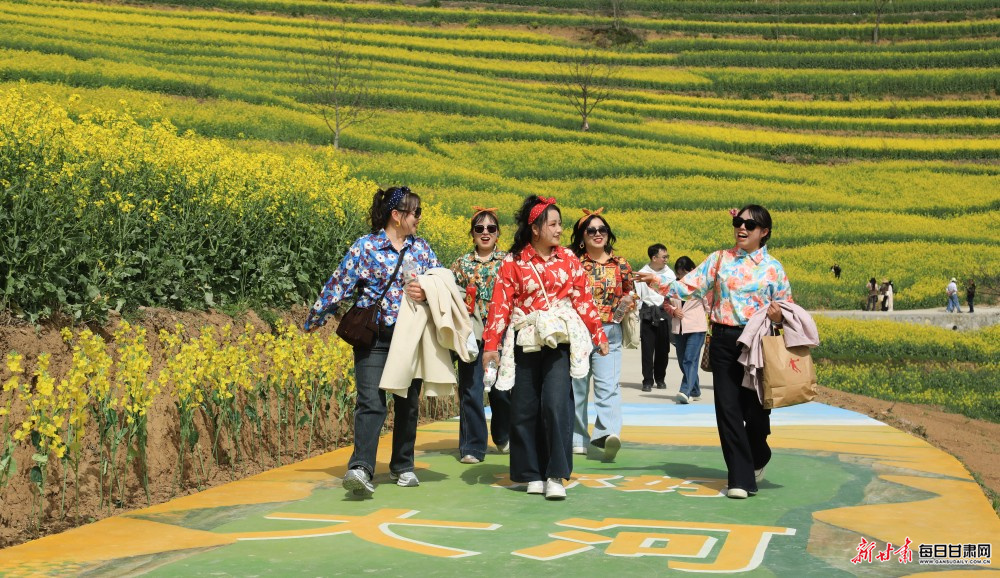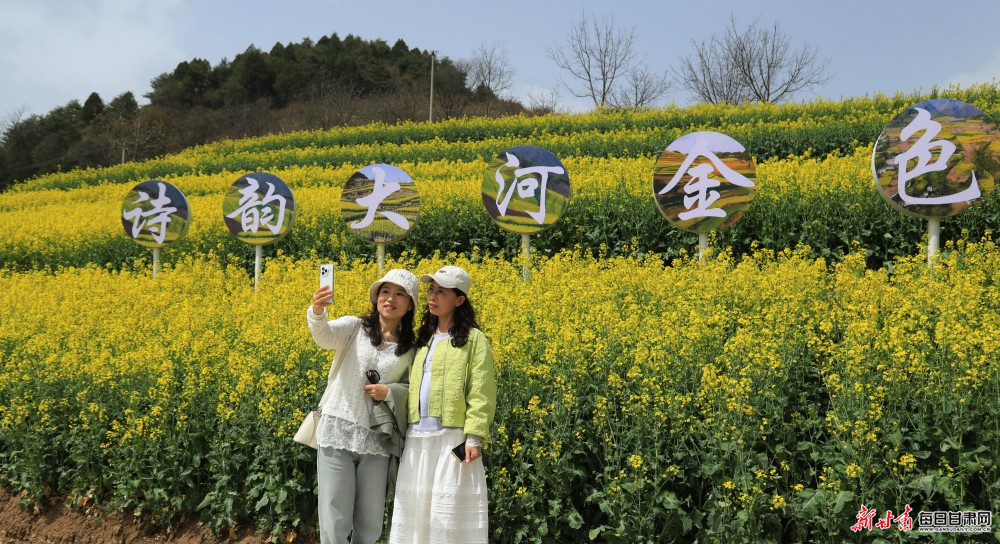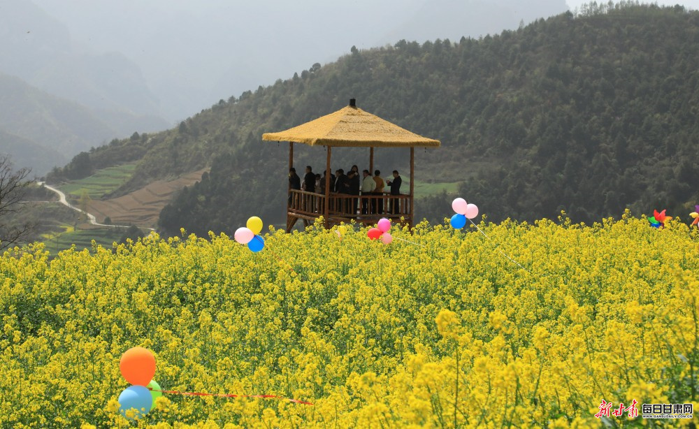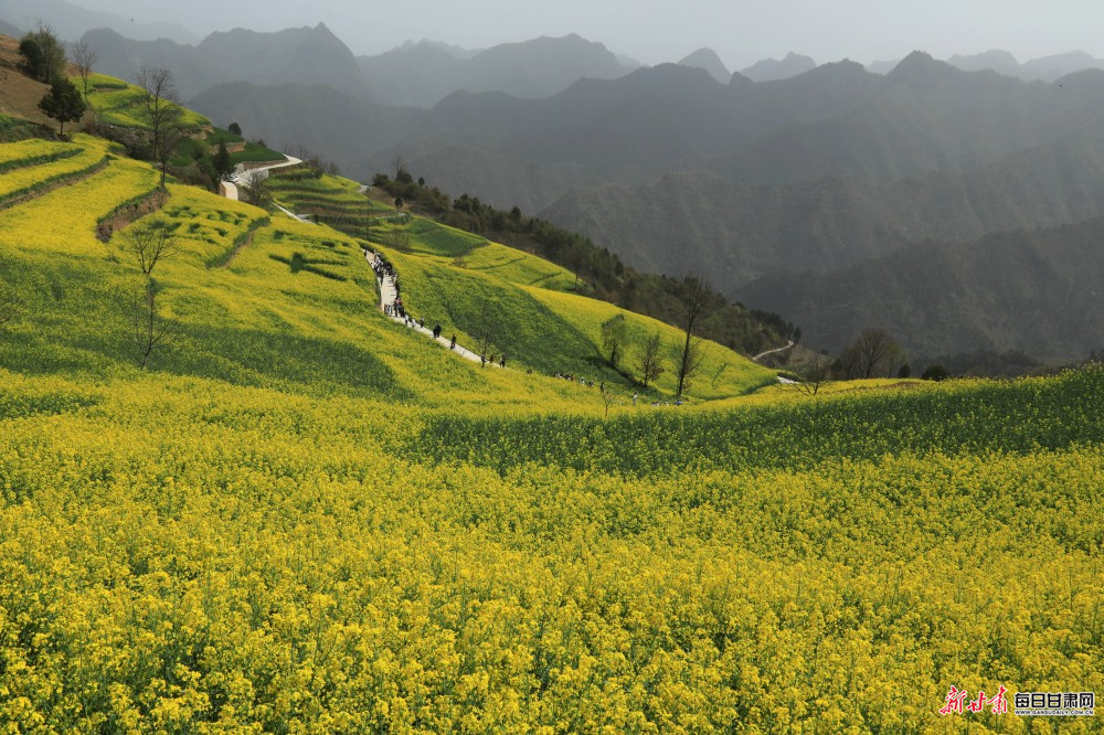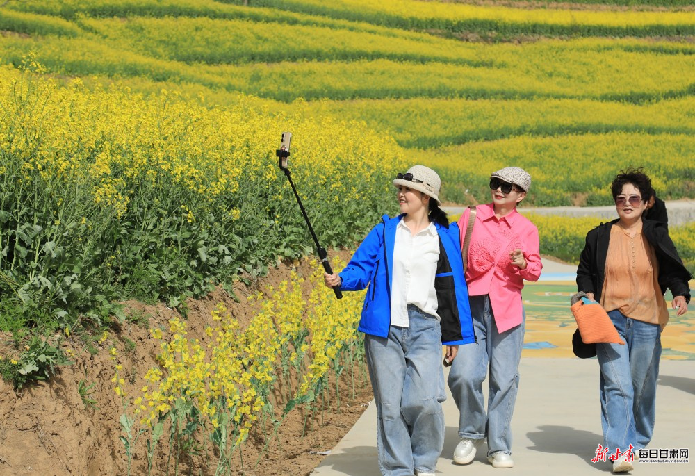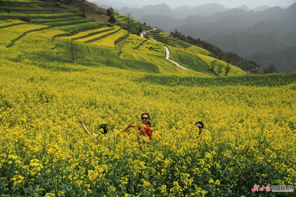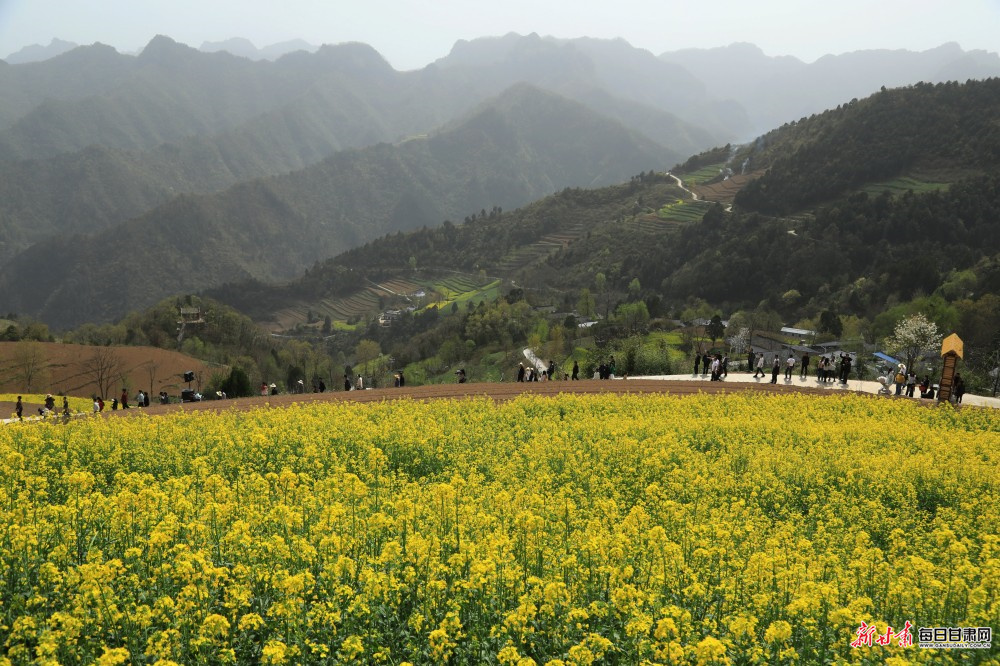 暮春时节,陇南市徽县大河店镇腰庄村万亩油菜花竞相绽放,不少游客徜徉花海,踏青赏景、拍照游玩。