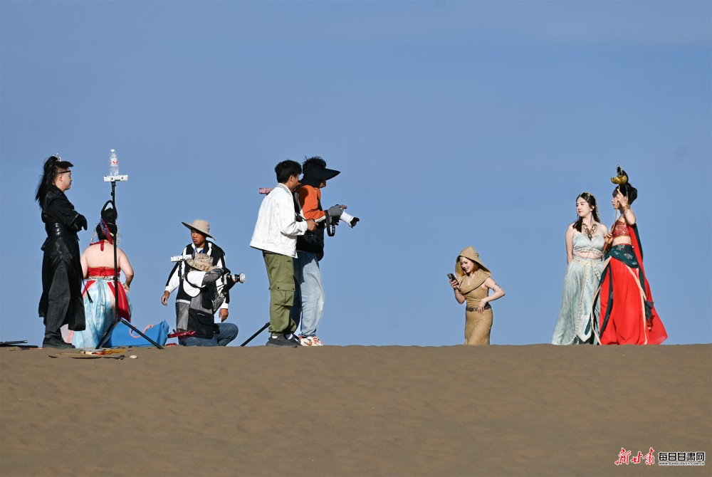春日旅游旺季,鸣沙山月牙泉景区迎来客流高峰,单日游客量屡创新高,其中近两成游客选择体验旅拍项目,成为这股文旅新风尚的参与者。景区内“公主坡”等核心打卡点位人气爆棚,身着飞天仙子、西域公主、古风侠客等特色服饰的游客伫立其间,衣袂随风翩跹,与壮阔沙山、澄澈泉景相映成趣;驼队缓缓穿行沙丘,清脆铃声萦绕耳畔,为画面增添了浓郁的丝路意境。百余名摄影师忙碌穿梭,全程提供专业妆造、姿势引导等服务,热门机位前排起长队,预约订单持续爆满,尽显旅拍市场的火热态势。