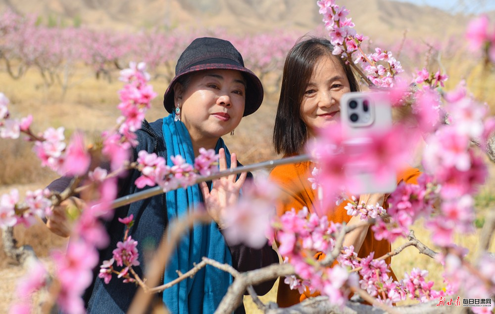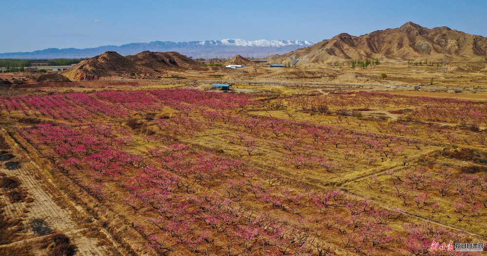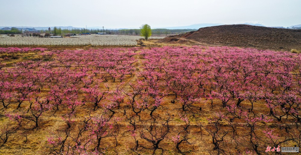 谷雨将至,景泰县猎虎山村数百亩桃花灼灼盛放,相邻的条山农场万亩梨花如雪似玉,红白交织、相映成趣。