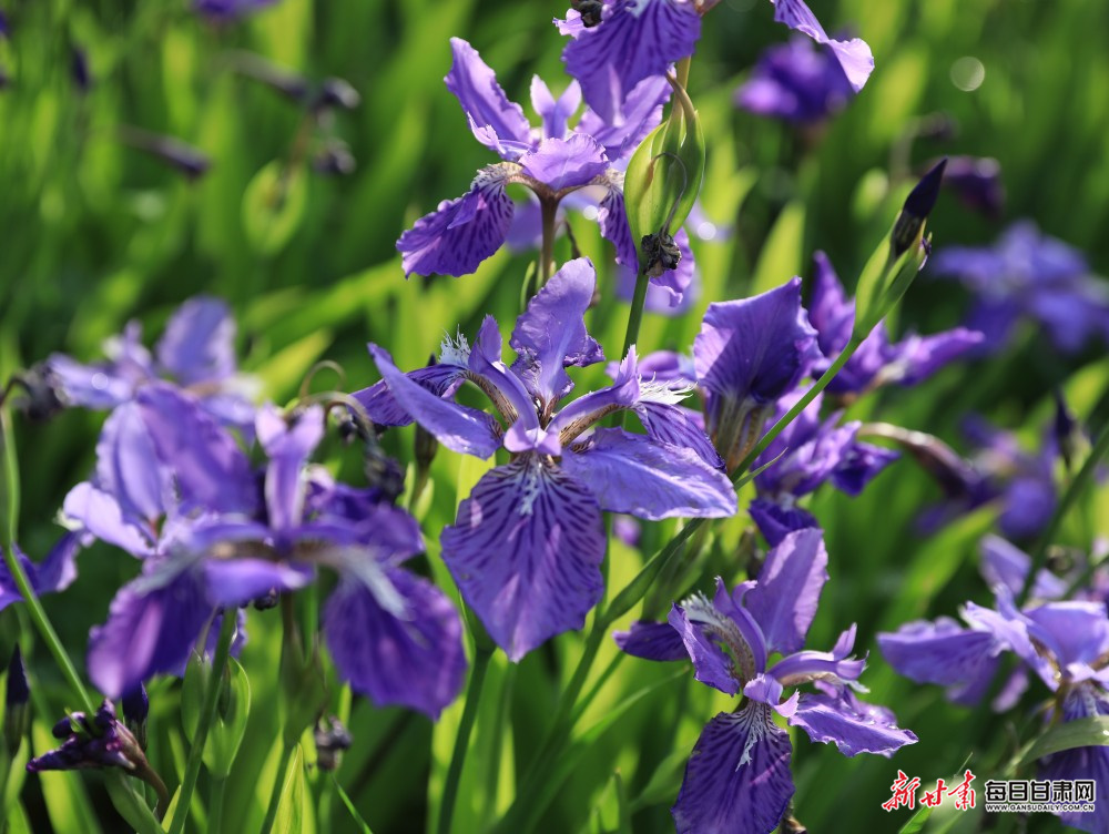 漫步东江湿地公园人行步道,翠绿修长的叶片间,蓝紫色花朵亭亭玉立、随风摇曳,清香淡雅。不少市民、游客前来踏青散步、拍照打卡,在江风与花香中尽享春日美好,感受家门口的生态美景。