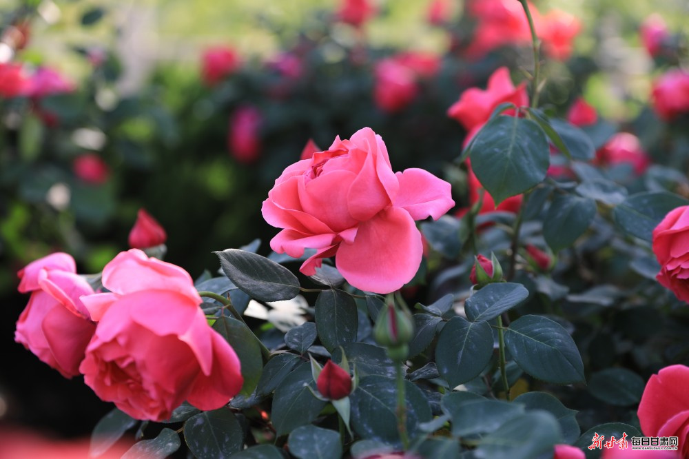 园内草木葱茏、枝叶抽芽,各类花卉依时节次第绽放,微风拂过,花香四溢、沁人心脾。蜿蜒的步道穿梭于绿意之间,红色的健身步道在绿树花海中格外醒目,成为市民休闲出行的优选路径。