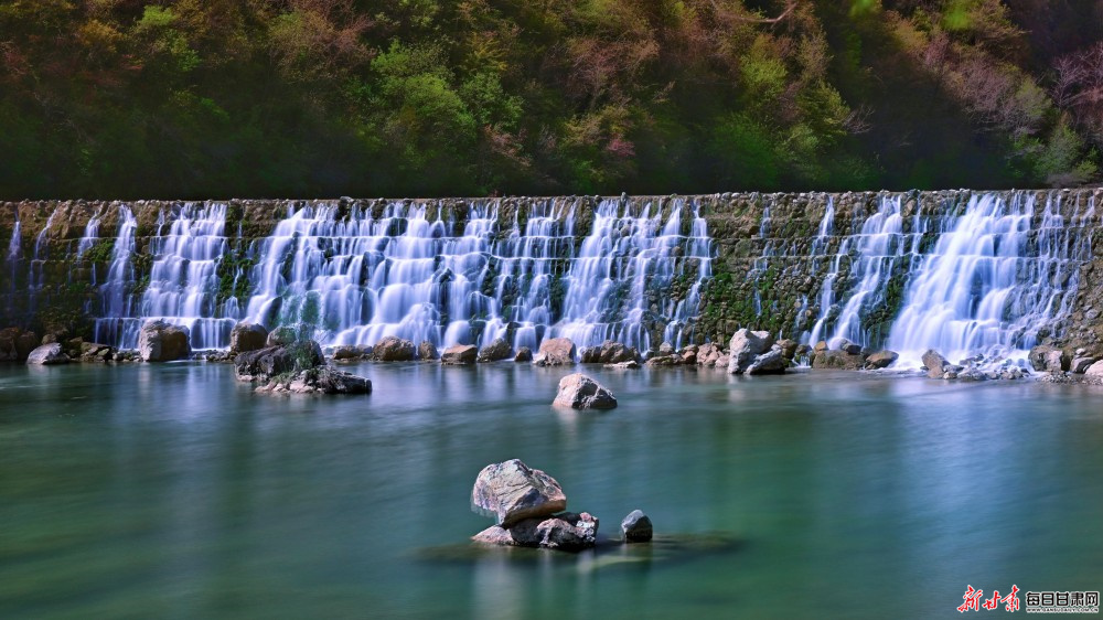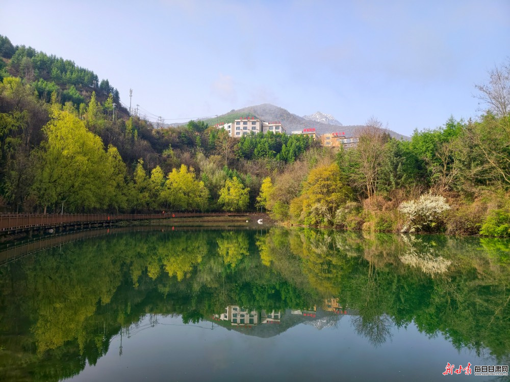崖壁瀑布飞流直下,水雾氤氲缭绕;林间薄雾轻笼山峦,鸟鸣阵阵,草木清新。穿行林间步道,负氧气息扑面而来,一步一景、步步如画。雪山、碧湖、繁花、翠林、飞瀑相映成趣,清幽雅致、诗意缱绻,原生态的山野风光静谧唯美,宛如隐匿在陇南深山的春日仙境。